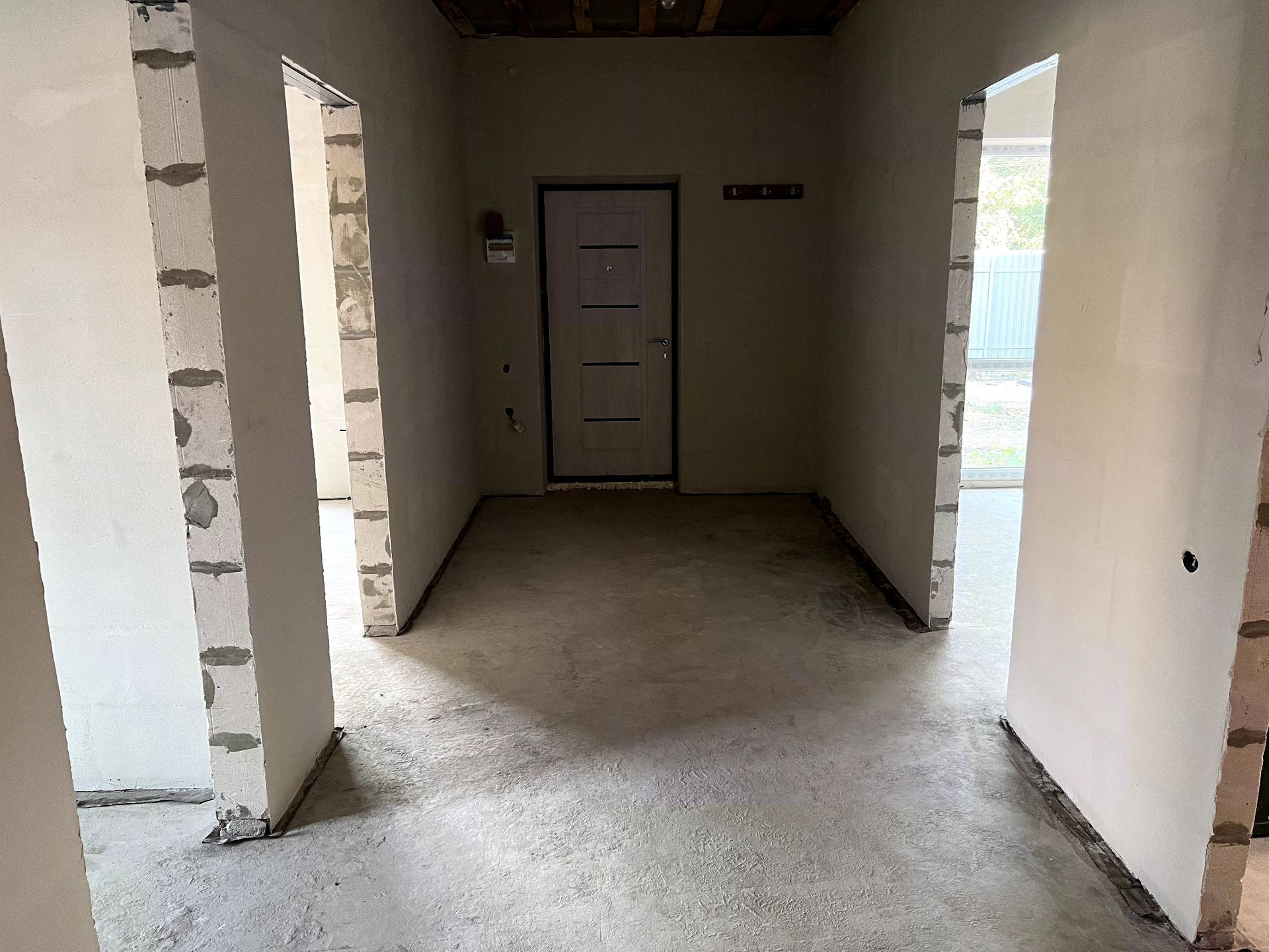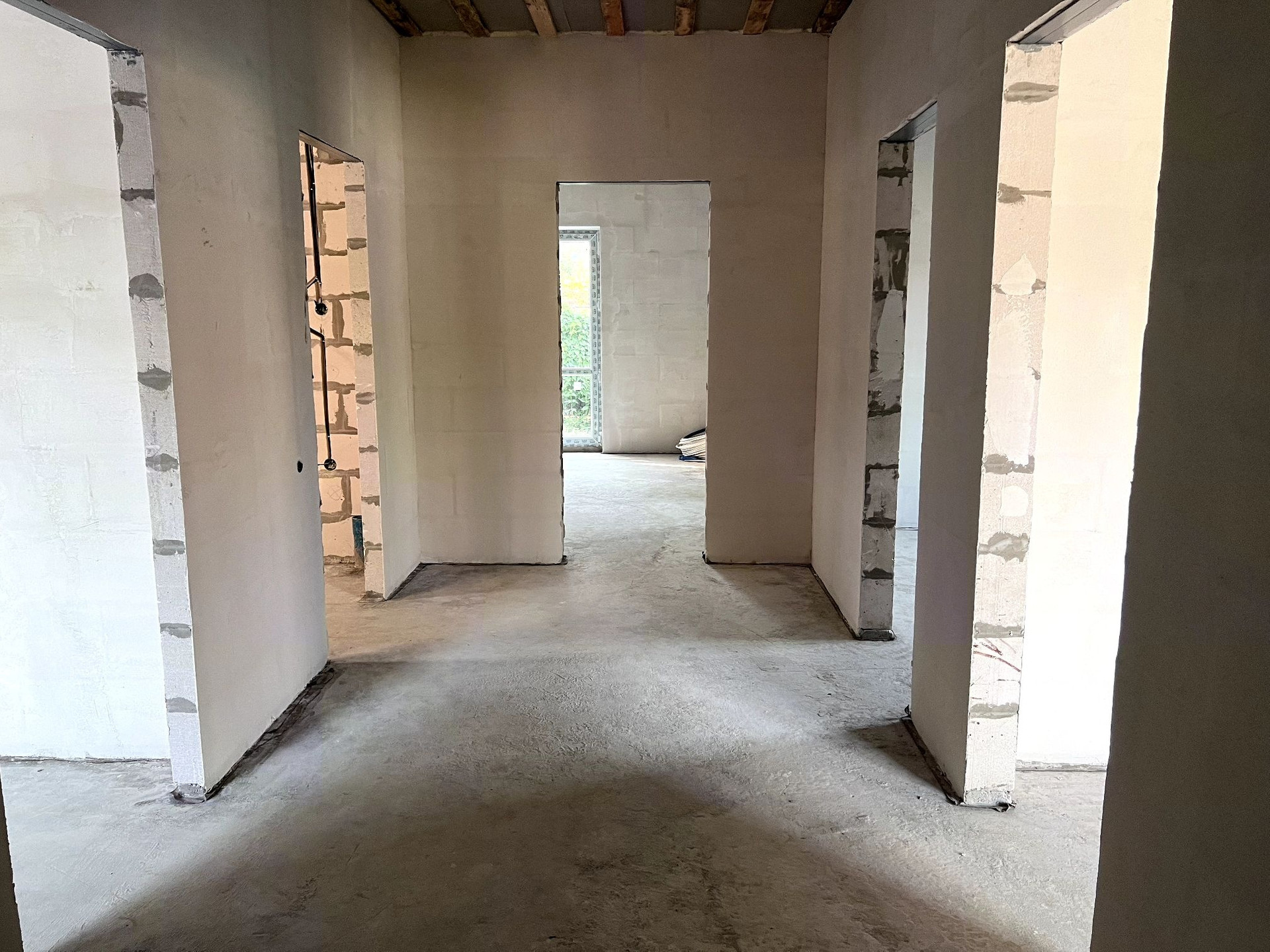 Вас ждут 4 спальни, большая светлая кухня - гостиная, широкий коридор и ванная, огромные окна в пол, в том числе и в 2х спальнях. Потолок высокий (3 м.),  хорошо утеплен, новая кровля- четырехскатная. Выход во двор также имеется со стороны кухни-гостиной. Подключены вода и электричество.