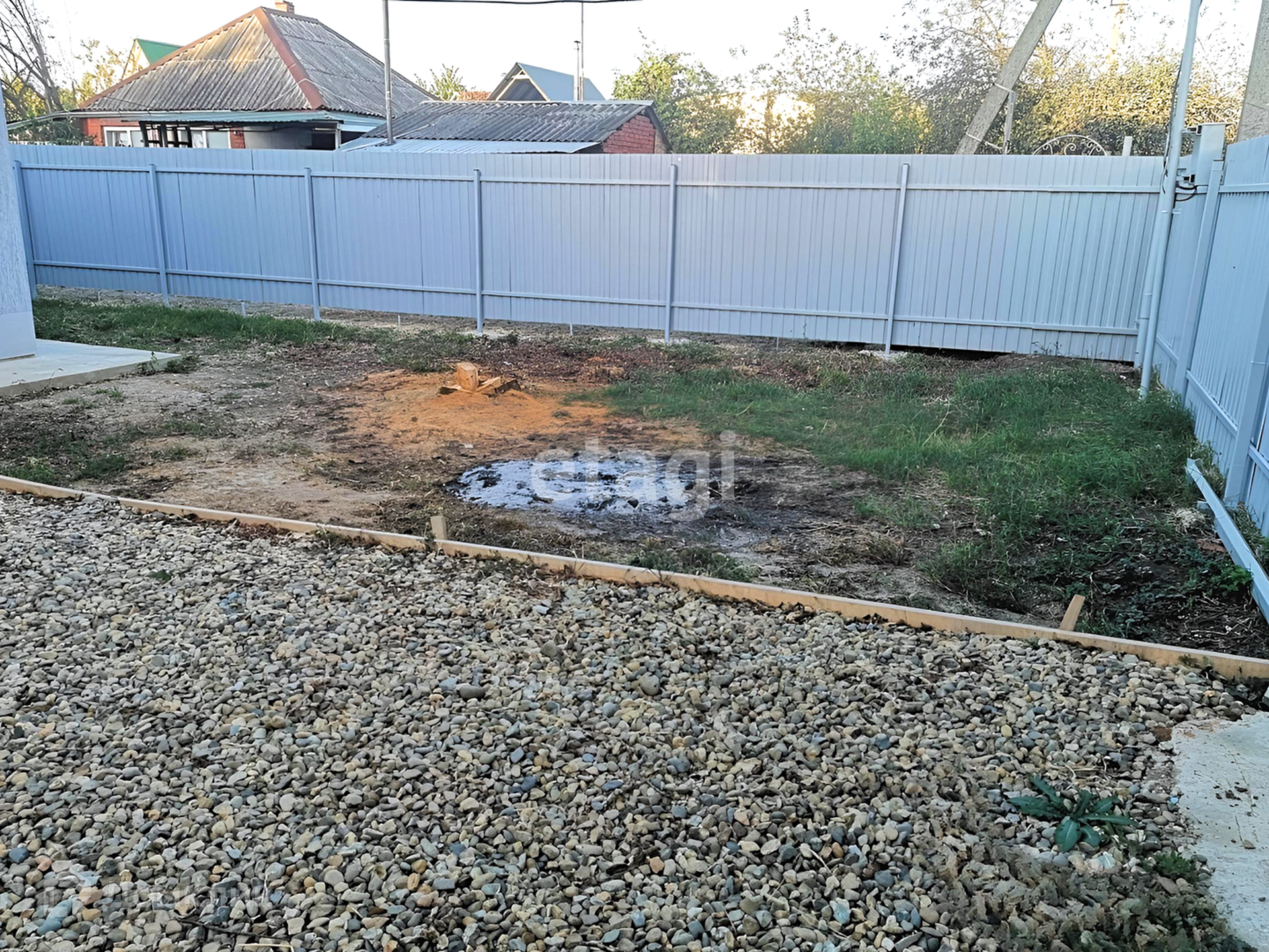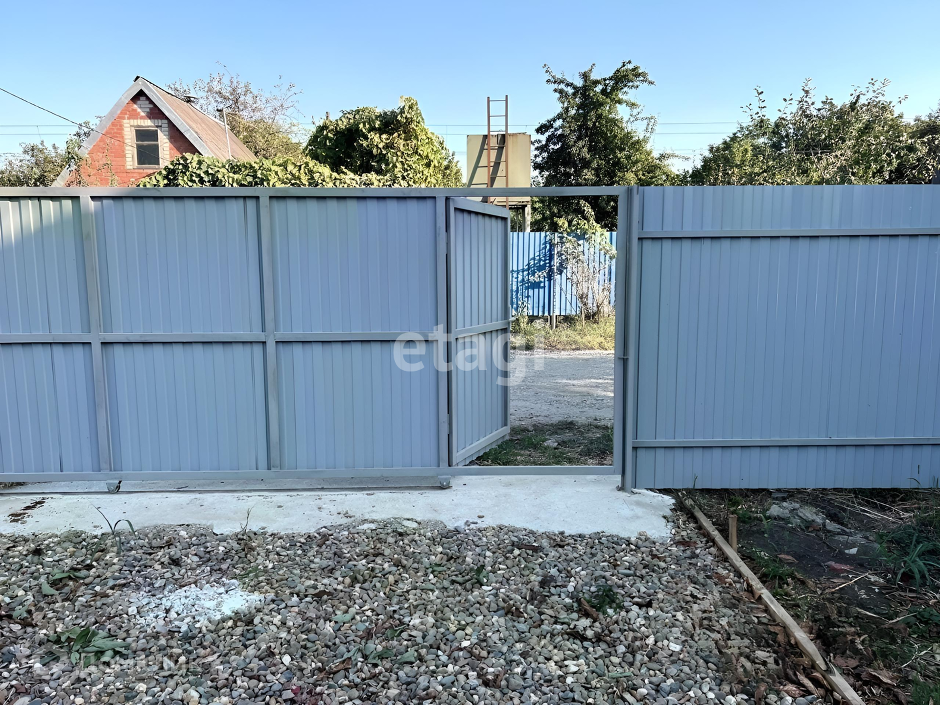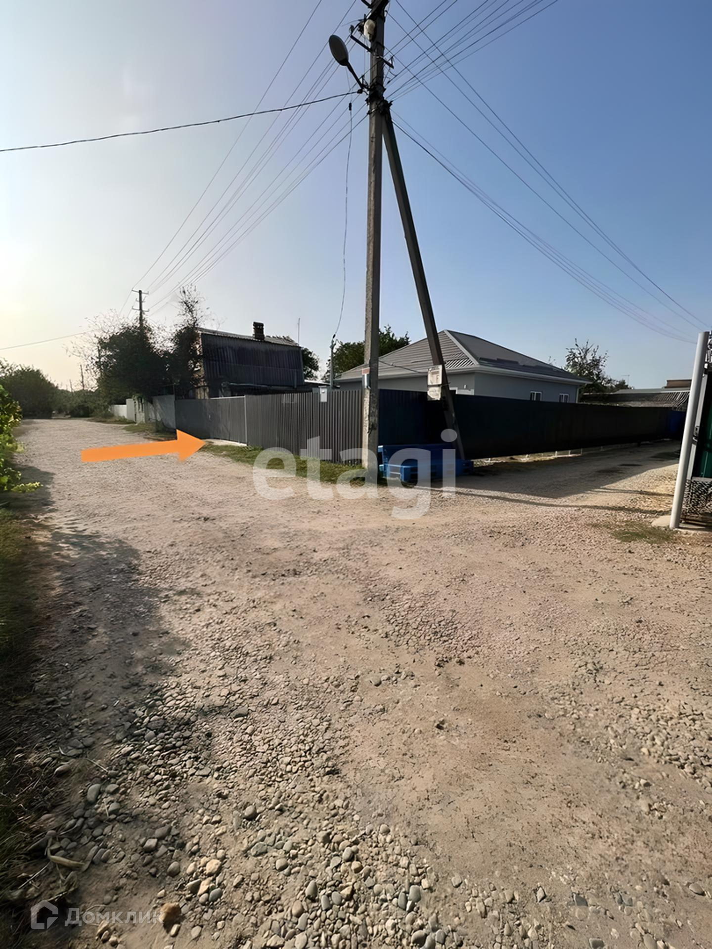 Улицы хорошо освещены фонарями. Весь участок огорожен профнастилом с открывающимися воротами. Во дворе можно поставить две машины.