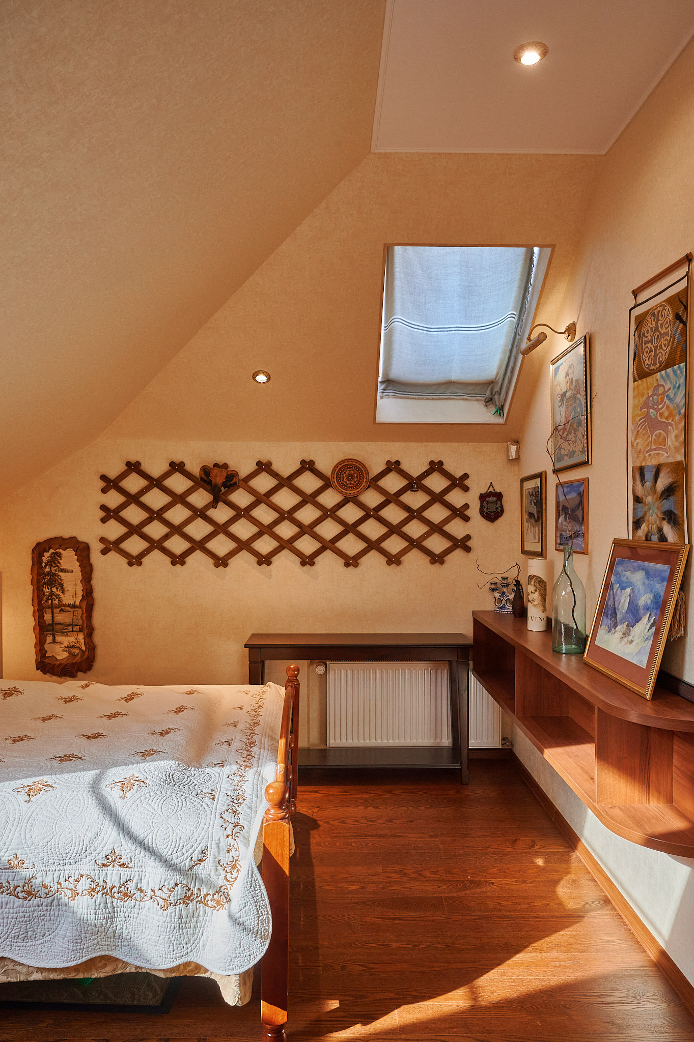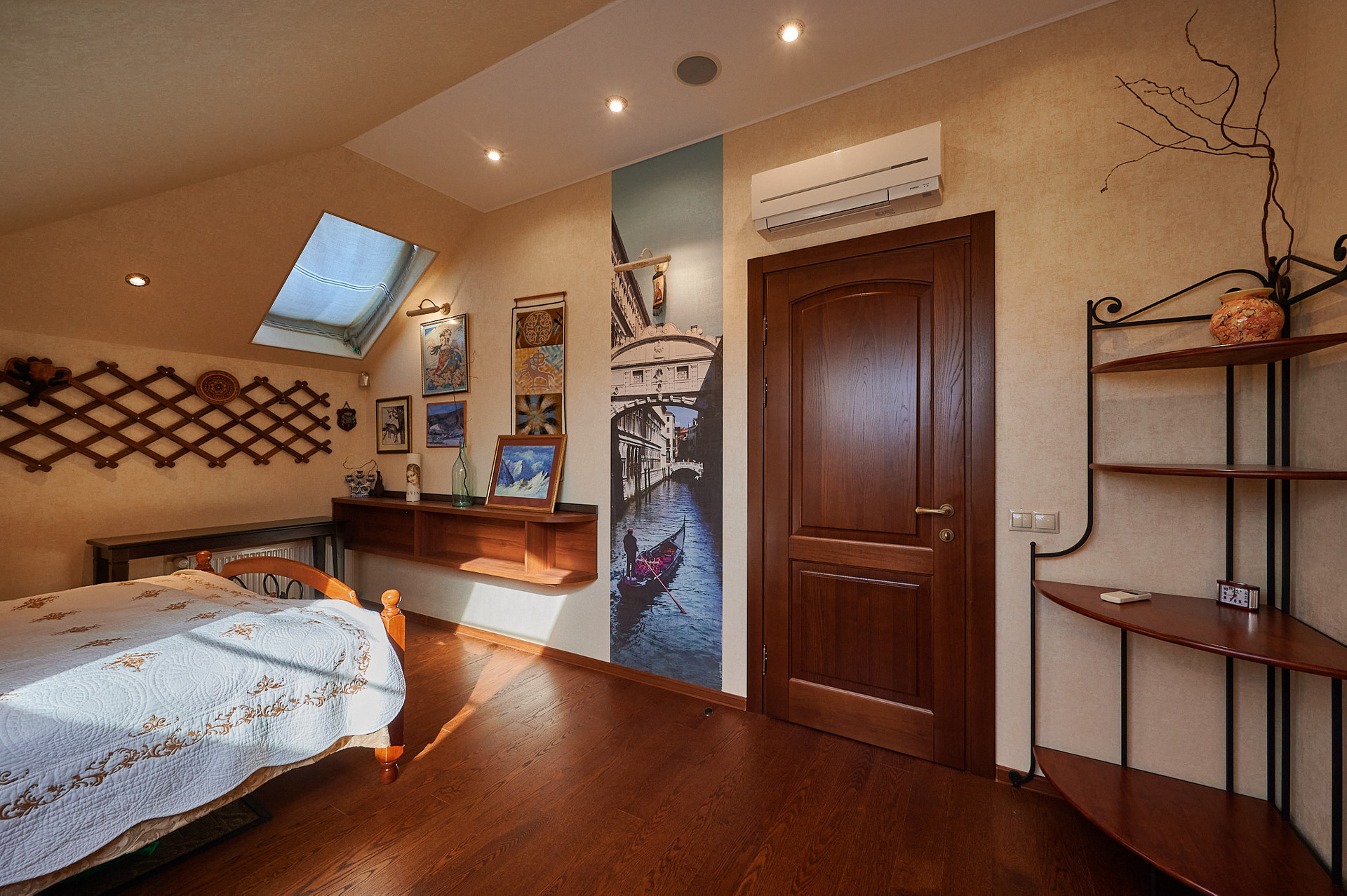 На втором этаже  ещё одна жилая комната с  шикарной гардеробной, санузел с душевой и большая комната отдыха, где разместился домашний кинотеатр и можно заниматься спортом. По всему дому установлена акустическая система, которая позволяет наслаждаться музыкой в любом помещении.