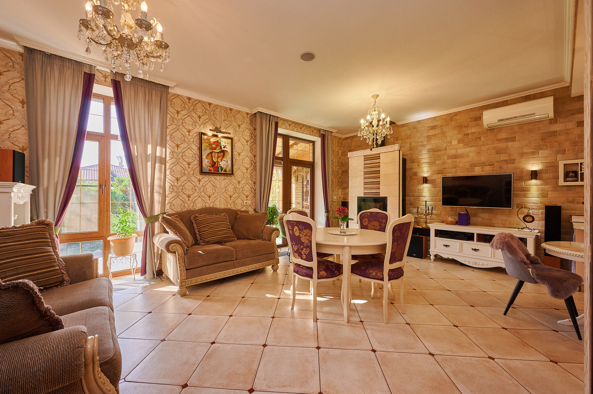 Сад и дом подсвечивается в тёмное время суток создавая неповторимую атмосфера и прекрасное настроение.