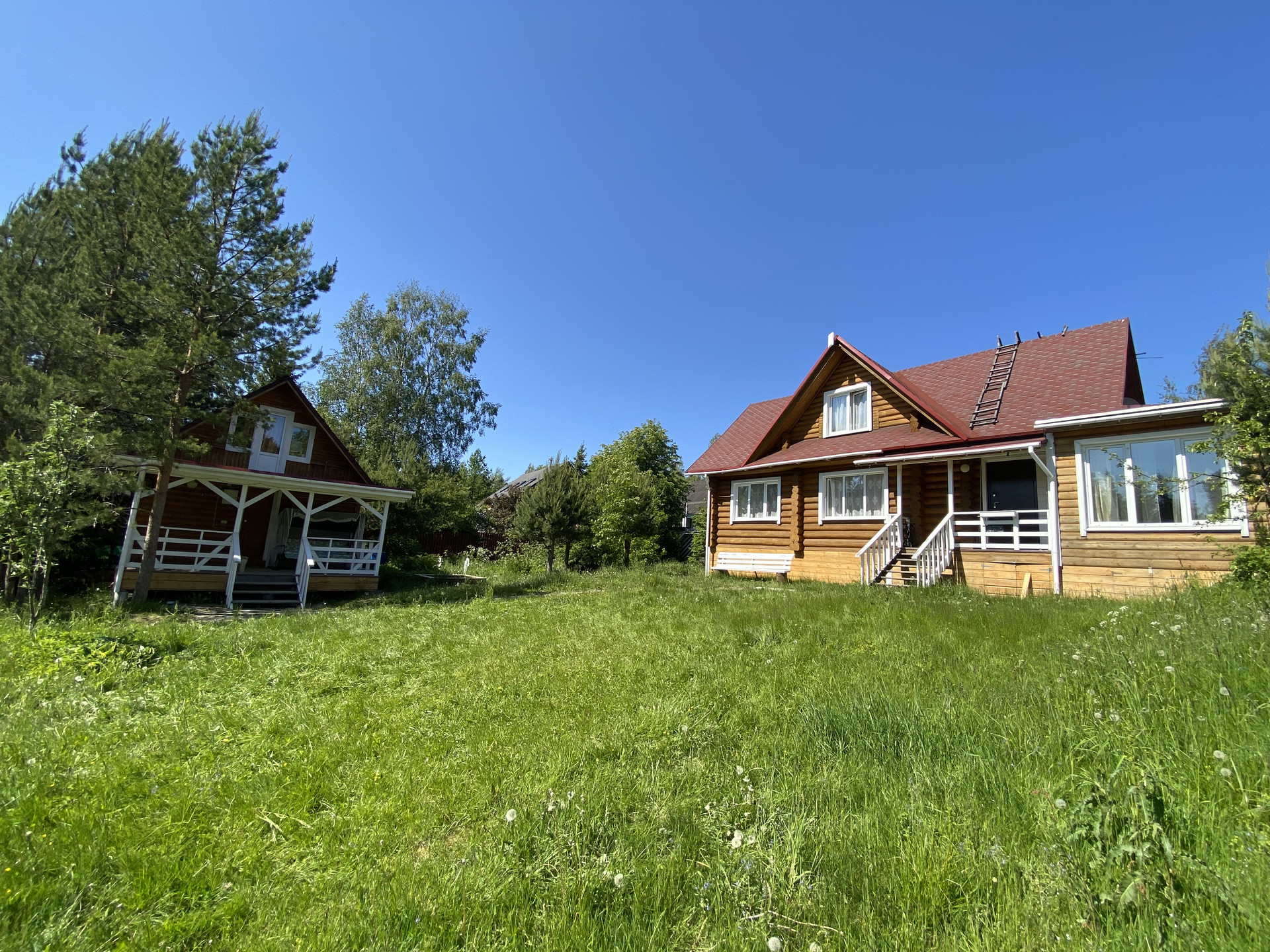 На участке 12 соток -2 дома. Бревенчатый 2-х этажный общей площадью 211 кв.м с террасой 15 кв.м и 2-х этажный гостевой домик-баня с террасой 24 кв.м . Оба дома в отличном состоянии.