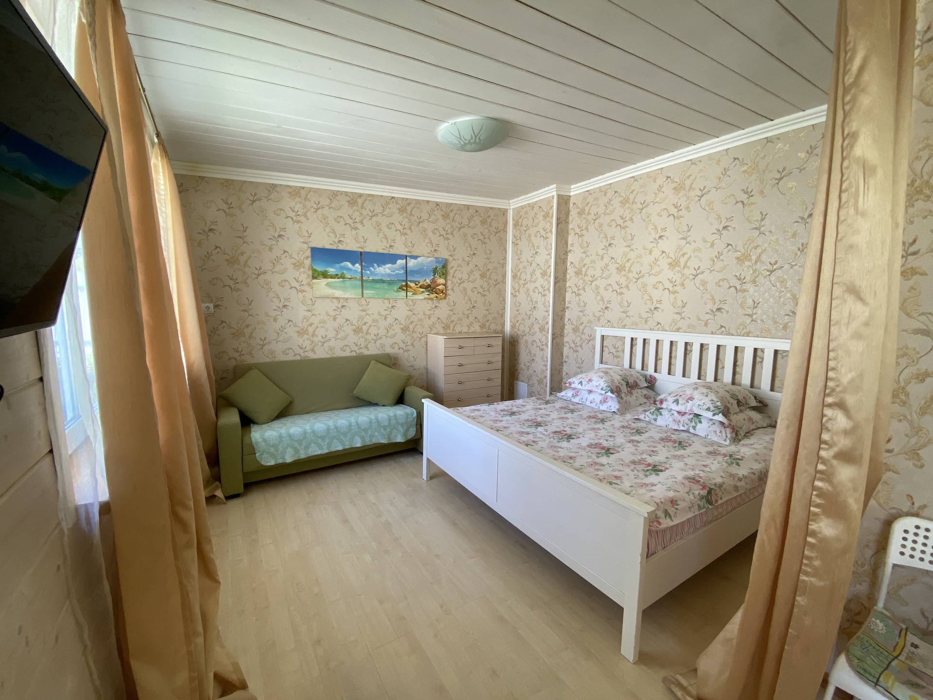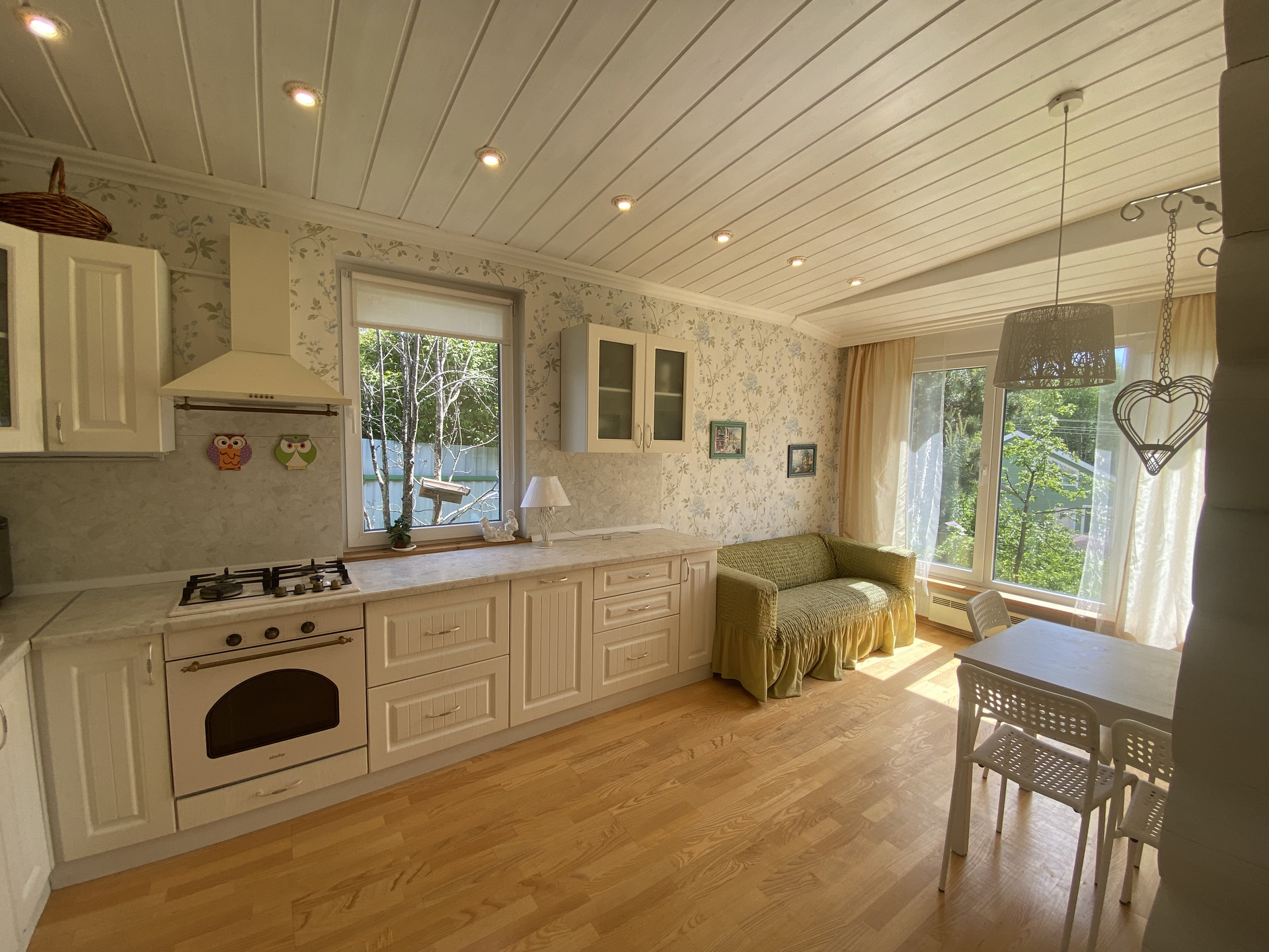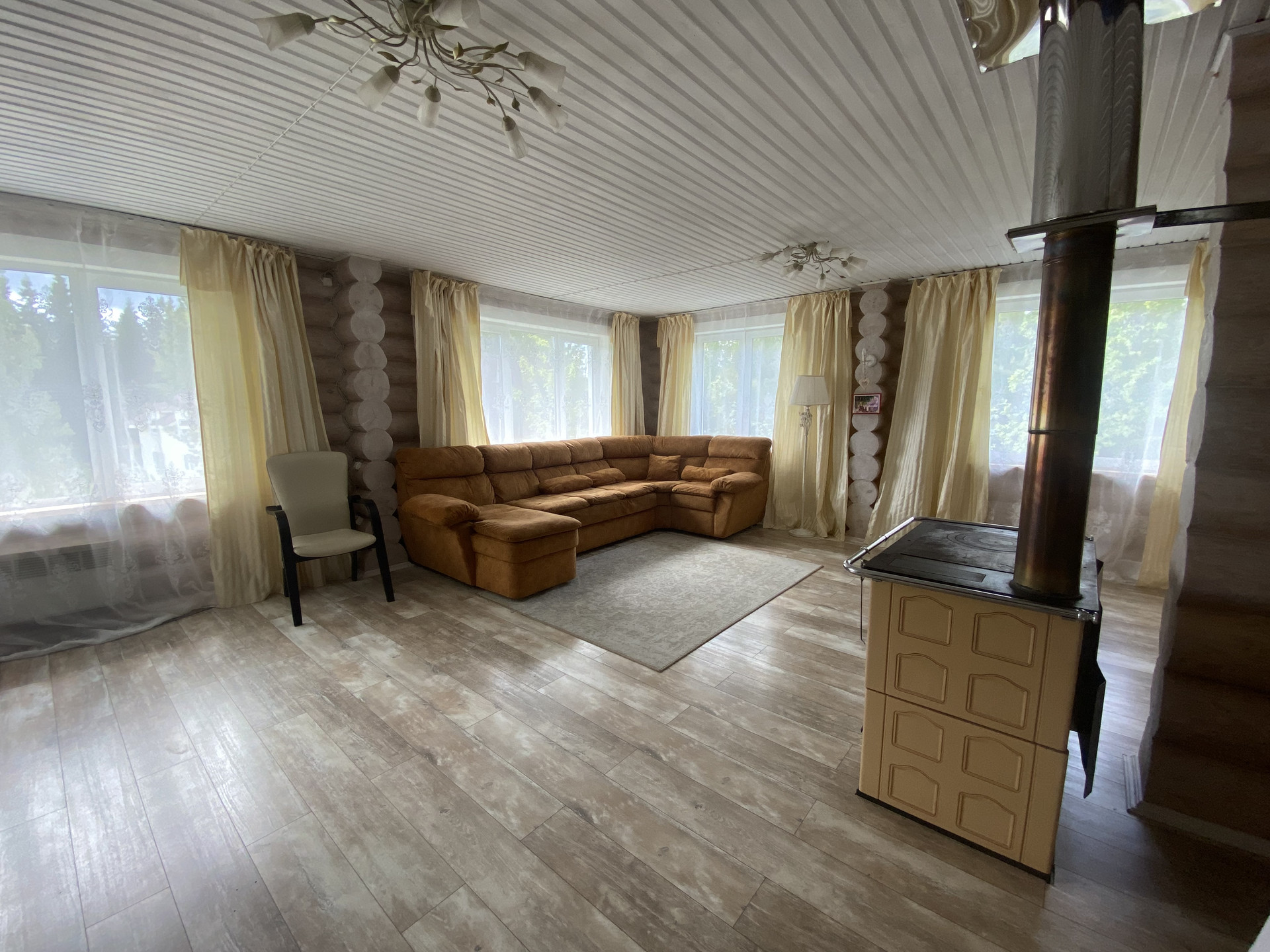 Внутри стены дома покрыты экологичным интерьерным финским лаком. Снаружи- ПеноТекс Ультра. В 2018 году к большому дому были пристроены современные апартаменты с отдельными входами, кухней и собственными сан.узлами .
