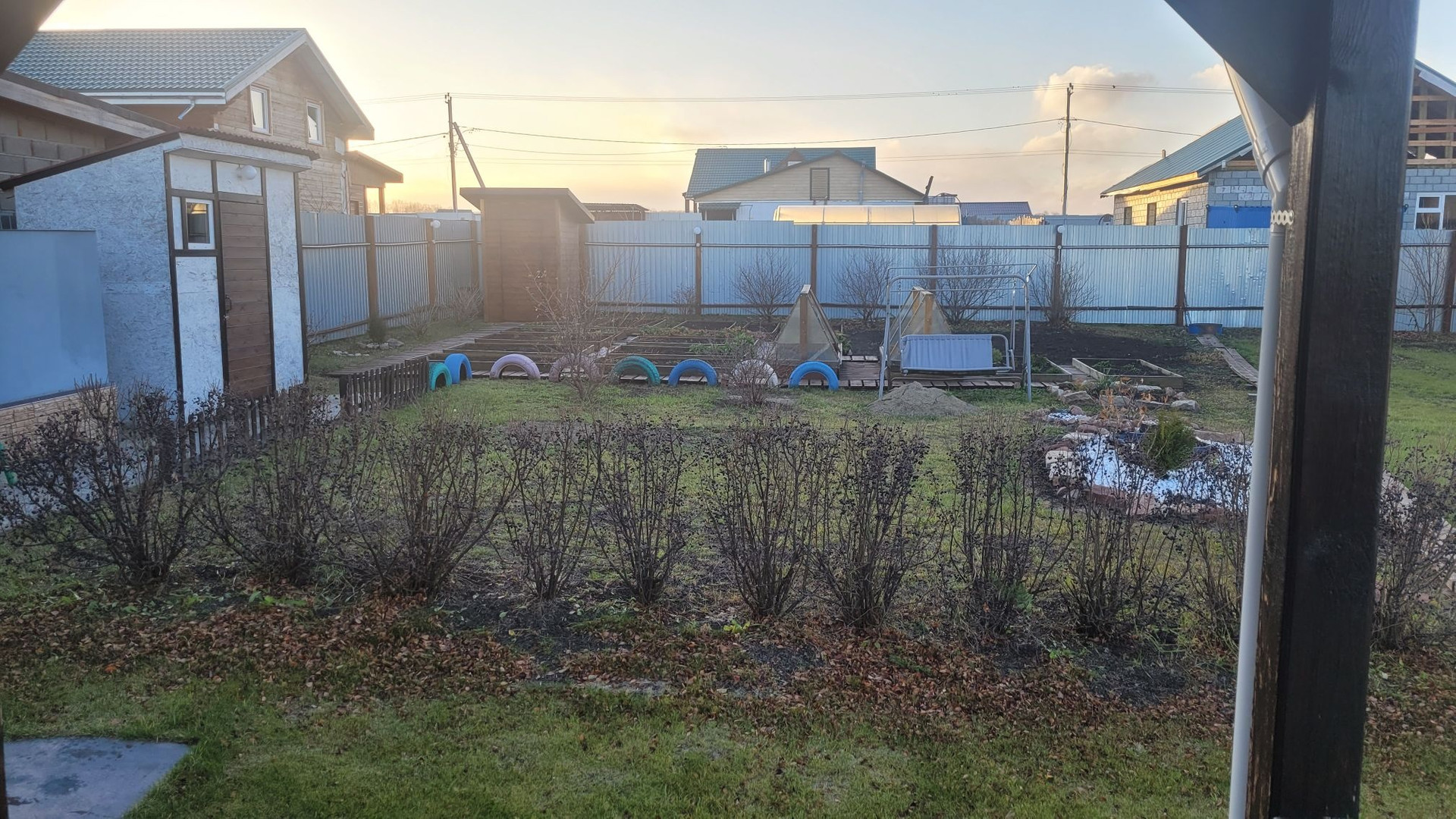 - По всему периметру участка глухой забор из профлиста с подсветкой.