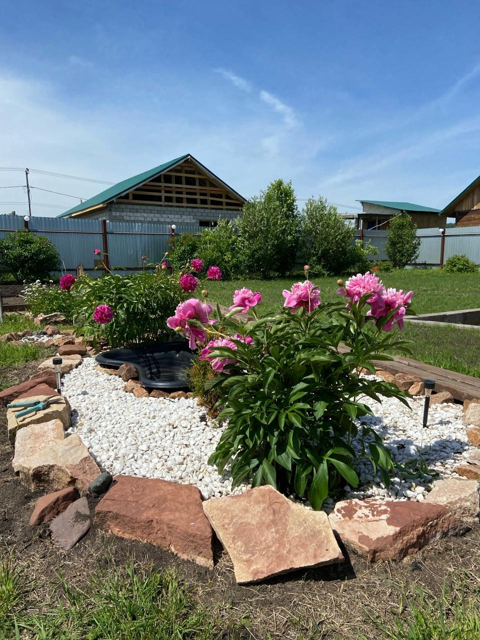 - На участке несколько грядок и множество различных кустов и деревьев (перечислять не