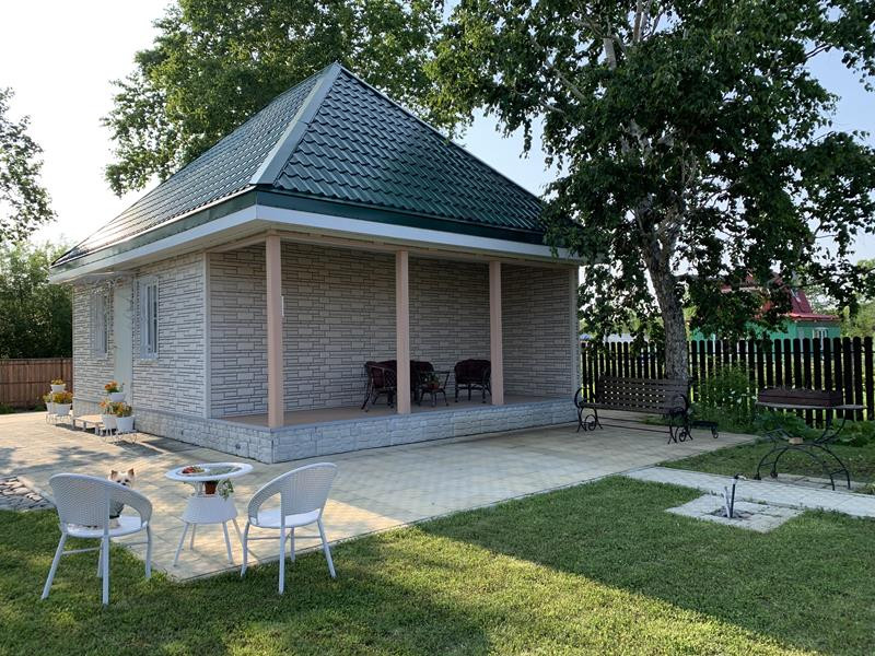 от Северо-Востока 5 минут езды. Поворот к Гранд-кафе, у озера. СНТ "Якорь-1", улица Балтийская, д. 137. Для тех, кто любит комфорт. Дача исключительно для отдыха, шашлыков с мангалом и тандыром. Никаких грядок. Только газон (есть электрогазонокосилка). Участок не требует особого внимания и ухода. Немного малины, смородины, клубники. Разводка полива по участку. Свет и проезд круглый год. Вода по сезону. Огороженный участок, откатные ворота. Капитальный блочный жилой дом 53,6 кв.м (Право собственности зарегистрировано). Одна комната и санузел с коридором, на чердаке можно оборудовать еще одну комнату. Внутри отделка евровагонка, санузел под кафелем. В доме туалет, душ, есть бойлер, дровяной камин, электробатарея. Без торга. Возможна ипотека, в том числе дальневосточная.