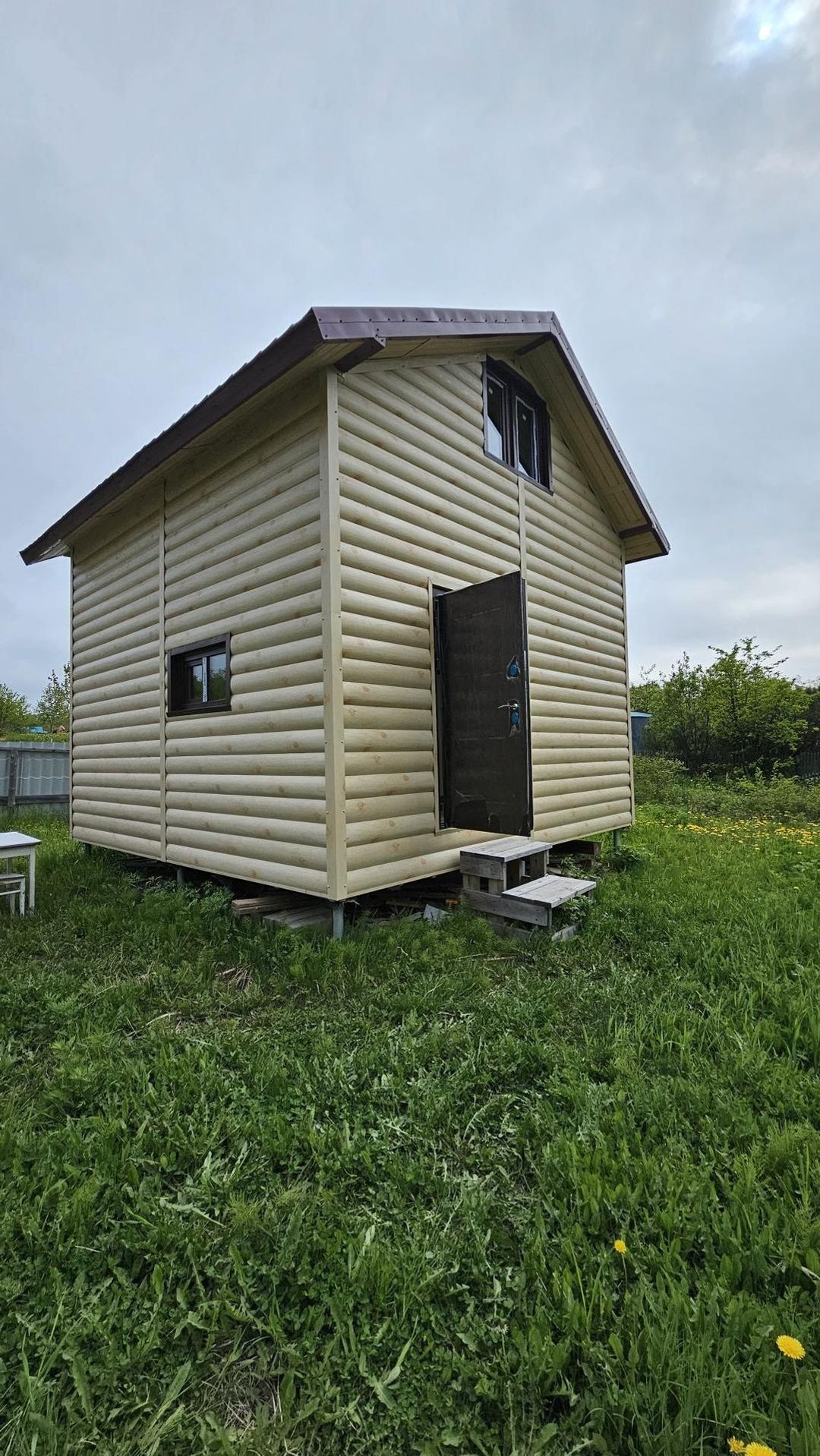 Этот  дом площадью 50  кв.м находится на участке в 8 соток , которые прилегают к лесу.  Дом выполнен из каркасного бруса, хорошо утеплен и отделан металосайдингом. Новый владелец получит в свое распоряжение хорошую новую печь-камин, а так же стройматериалы.