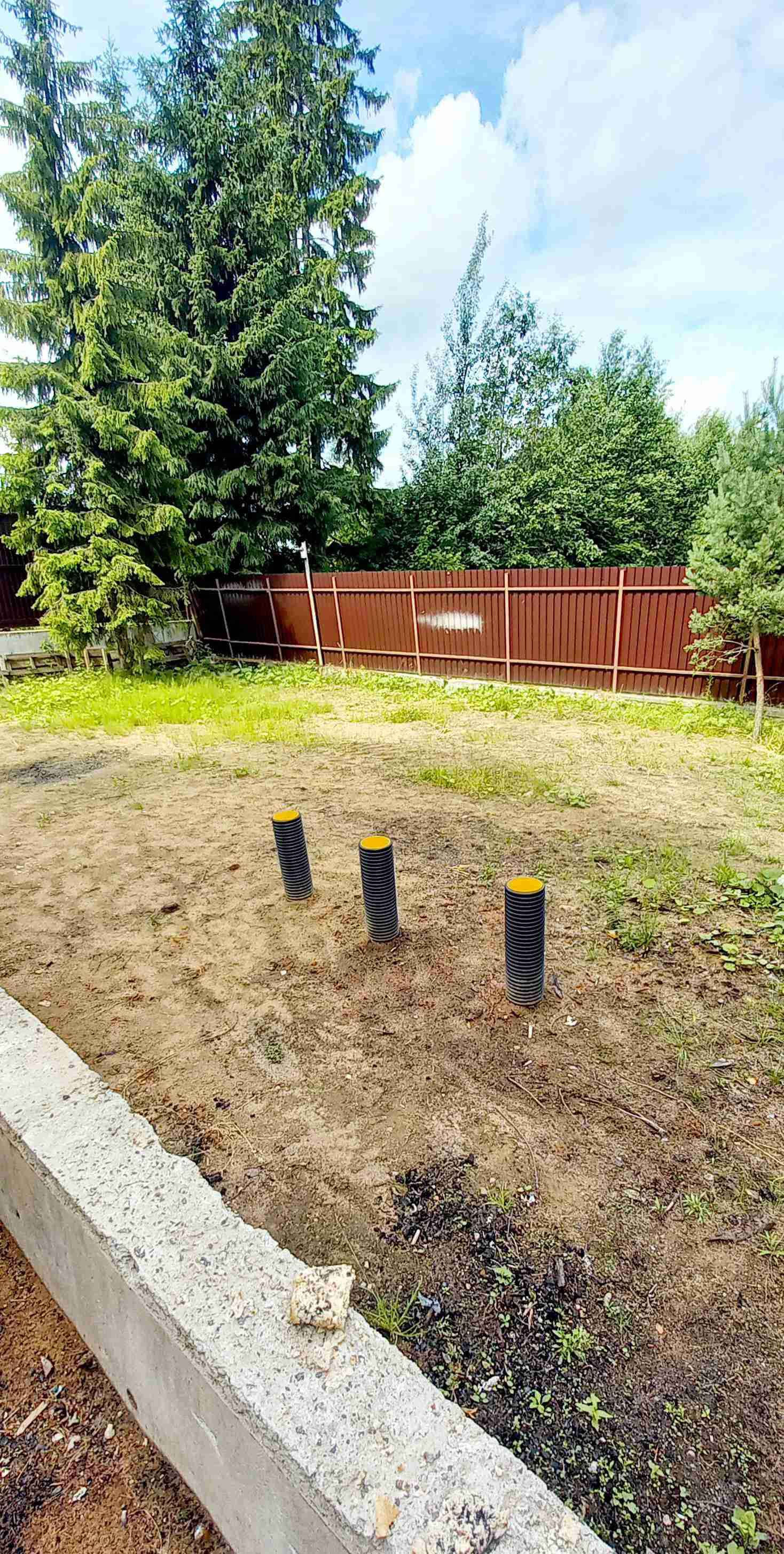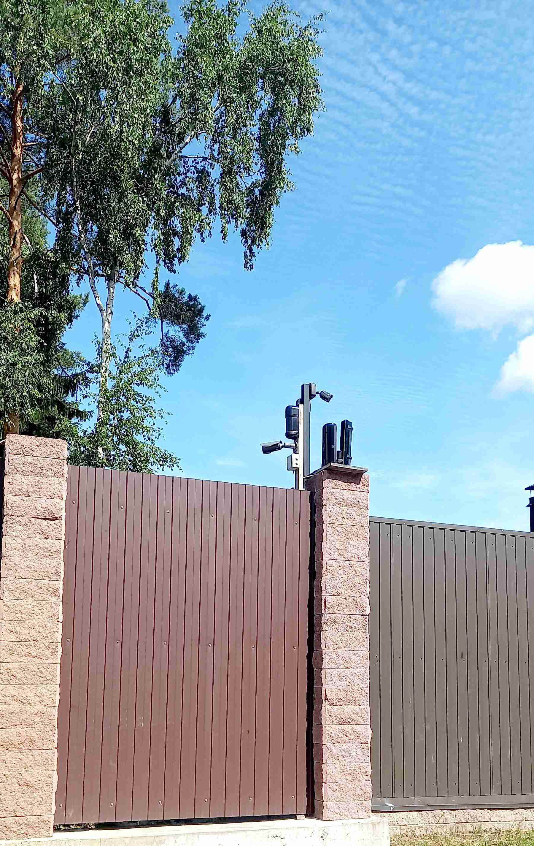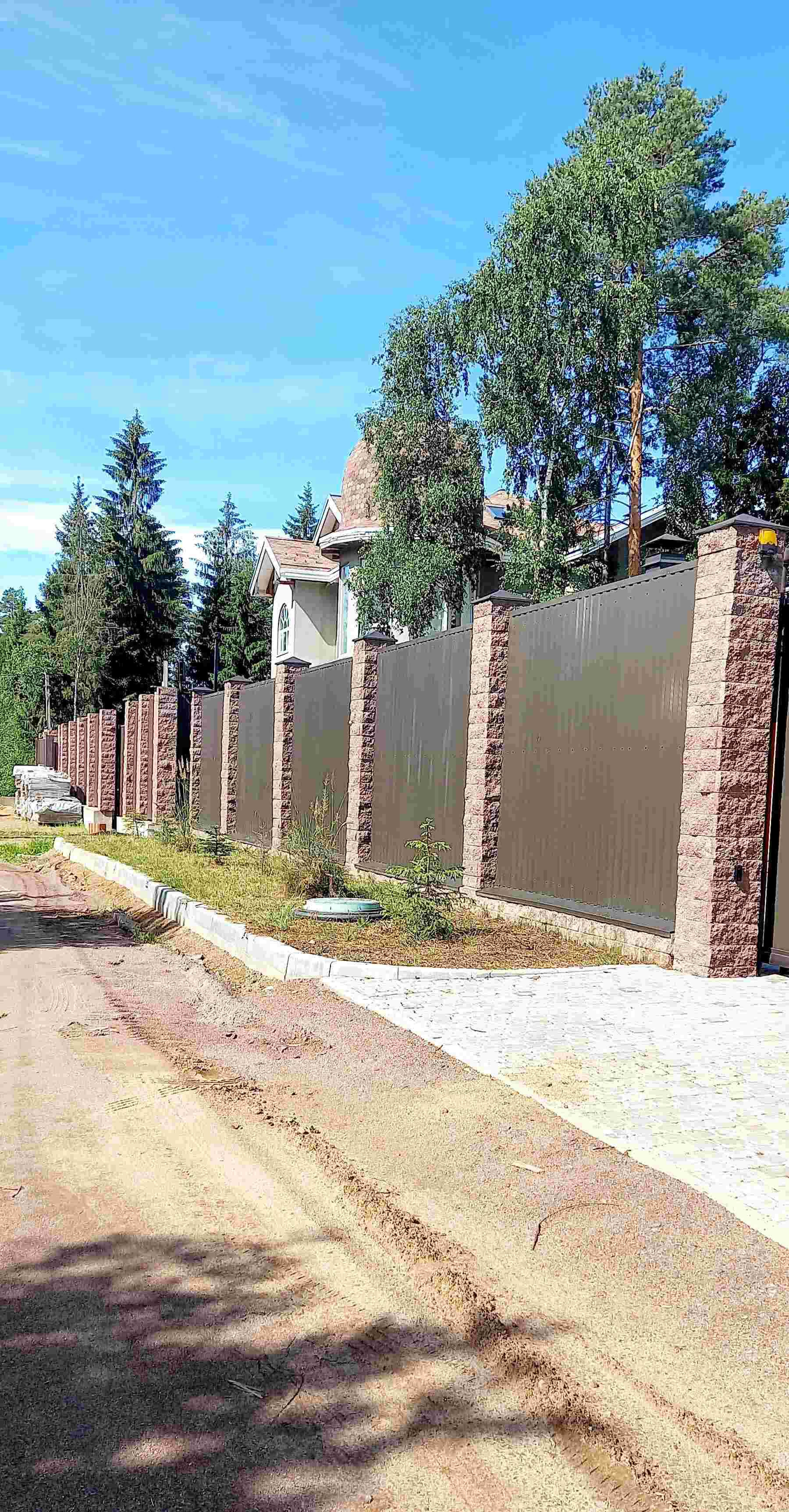 Участок огорожен забором из профлиста на ленточном фундаменте с откатными воротами (электрическими и механическими). По всей территории участка проведены 2-х уровневые дренажные системы. Закуплена тротуарная плитка. Гараж на два машиноместа с роллерными воротами.