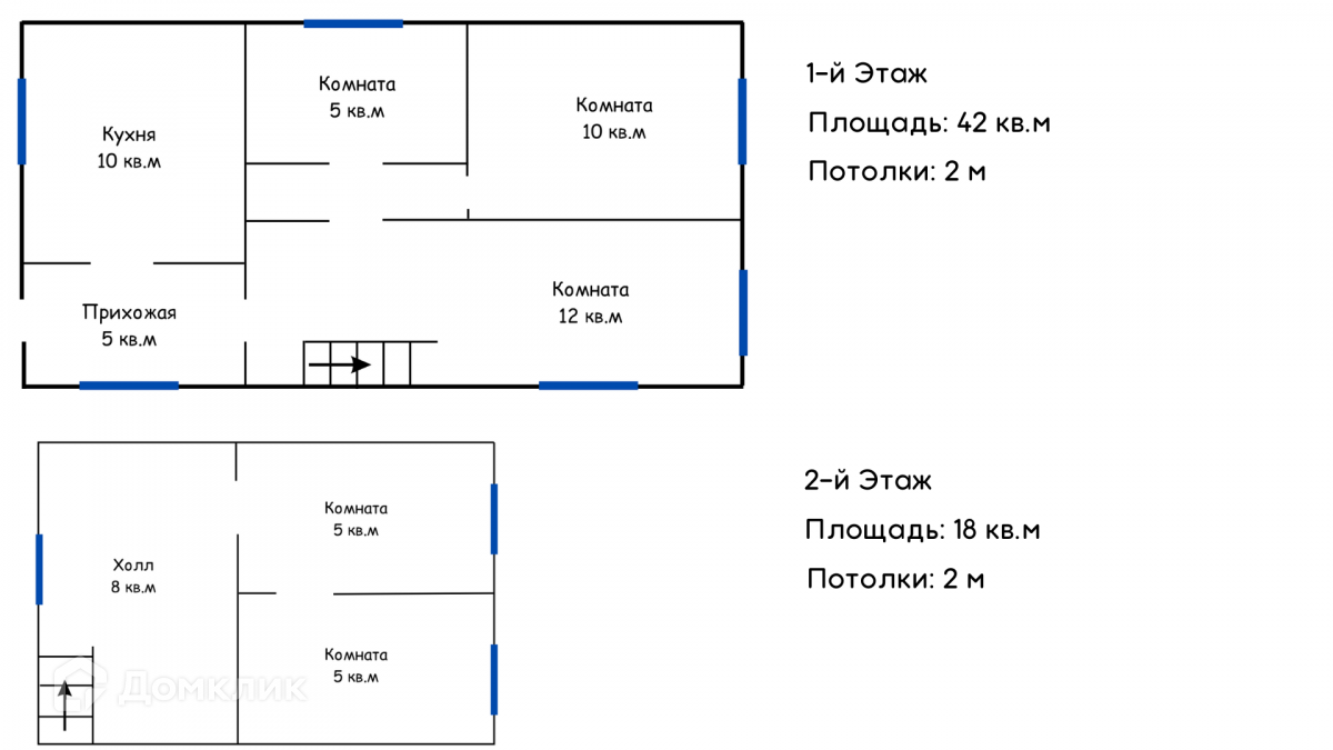 Кухня 10 кв.мКомната 12 кв.мКомната 10 кв.мКомната 5 кв.мПрихожая 5 кв.м2-й Этаж: