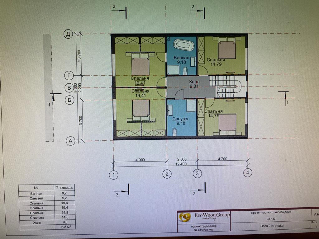 2 этаж: 4 спальни, из которых одна "Мастер-спальня с отдельной ванной комнатой), а так же общий санузел.