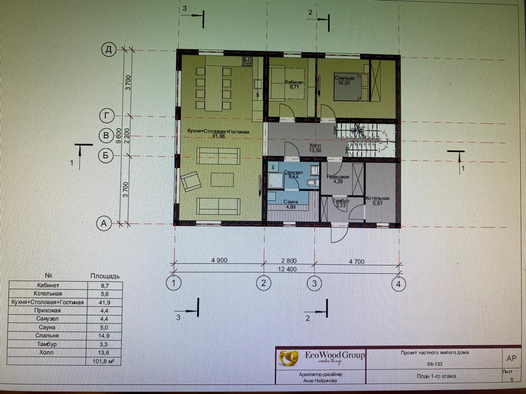 Дом 220 кв метров. 1 этаж: Прихожая, отдельная котельная, хозяйственная комната(постирочная/гладильная/ хоз.нужды), гостевая спальня или кабинет, санузел.