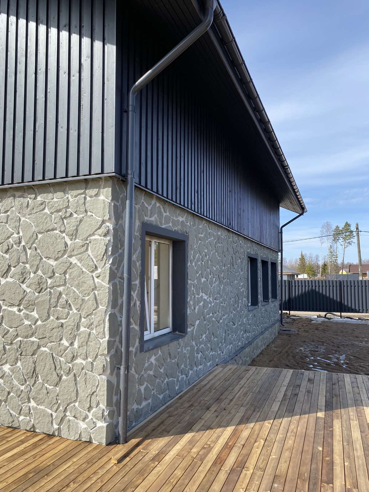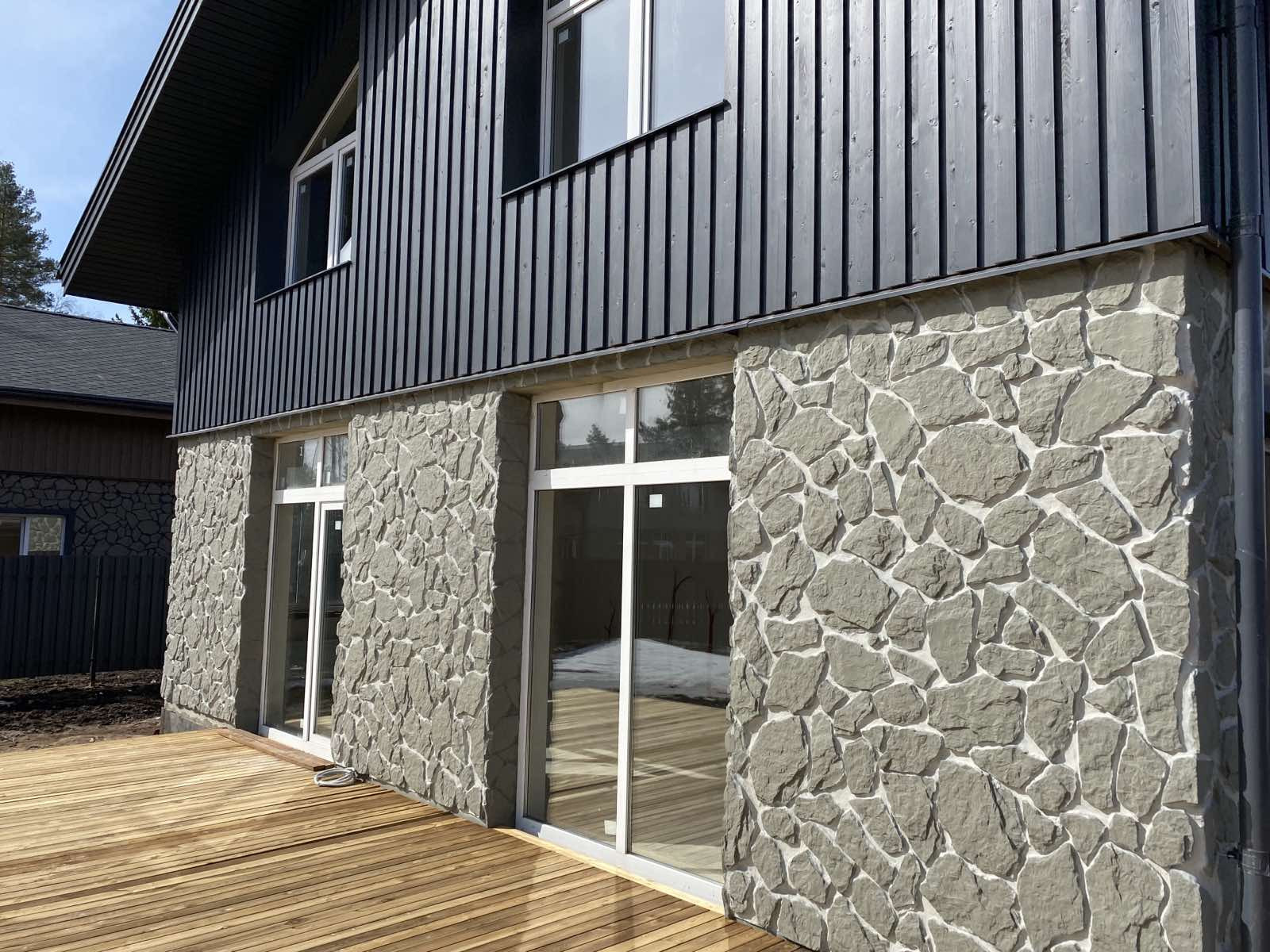 - 1 этаж 3х слойные ЖБИ панели с фасадной отделкой под натуральный камень