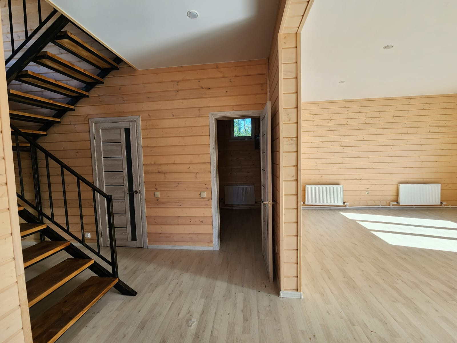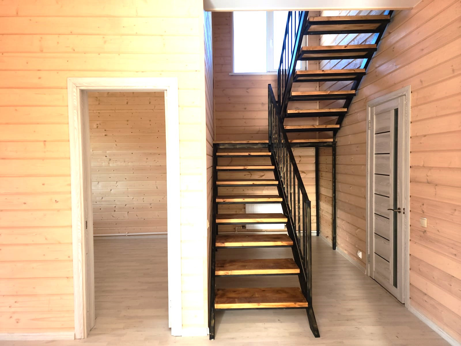 Внутри сделан евро-ремонт, потолки натяжные, осветительный приборы, стены - имитатор бруса. Лестница в стиле ЛОФТ, сан.узел первого этажа - душевая кабина, сан.узел второго этажа - ванная.