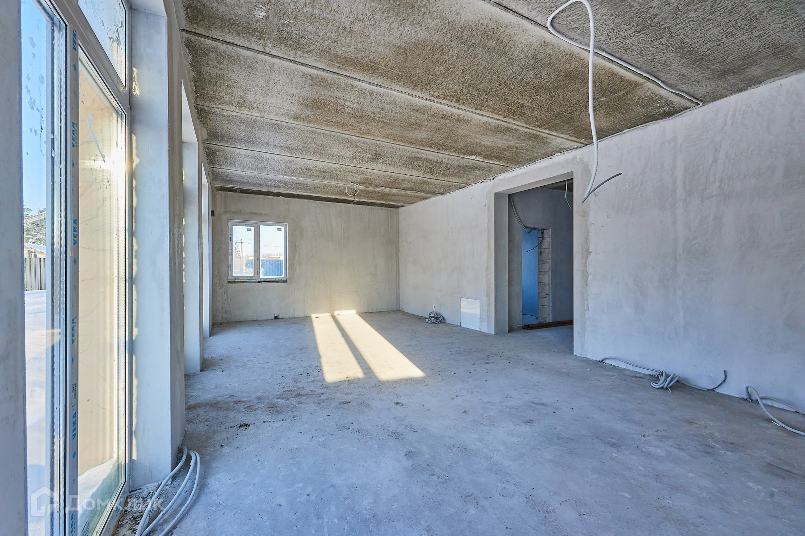 На первом этаже светлая кухня-гостиная 41м2, с 5-ю окнами, котельная, санузел, постирочная, сауна, гостевая спальня и кабинет с окном