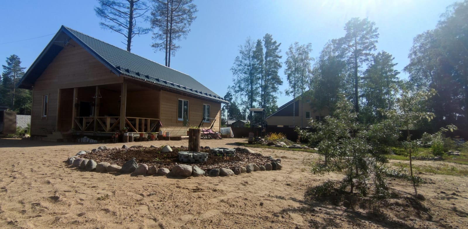-Дом расположен в уютном и красивом месте. Природа,чистый воздух, лес. В пешей доступности карьерные озера. Въезд и выезд на участок через шлагбаум, садоводство охраняется, есть камеры видеонаблюдения. Дороги асфальтированные, зимой производится уборка снега.