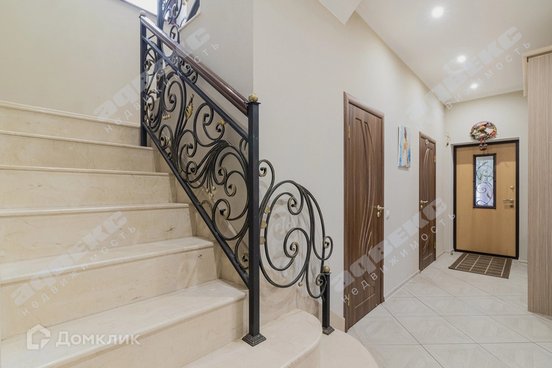 - на первом этаже большая гостиная и оборудованная кухня, 1 спальня ( можно сделать кабинет), санузел. На второй этаж ведет мраморная лестница.