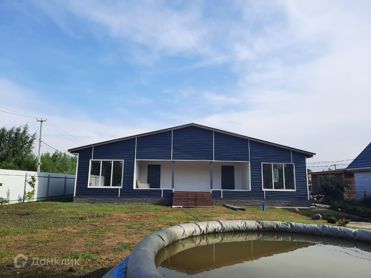 На участке новая баня с летней кухней 24 кв.м., пруд, надувной бассейн, залитая мангальная зона, место под парковку автомобиля, посажен яблоневый сад (яблоки, сливы, смородина, малина, много клубники, крыжовник).