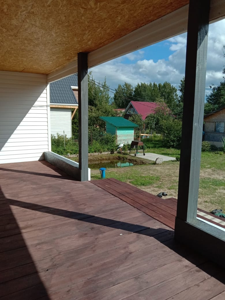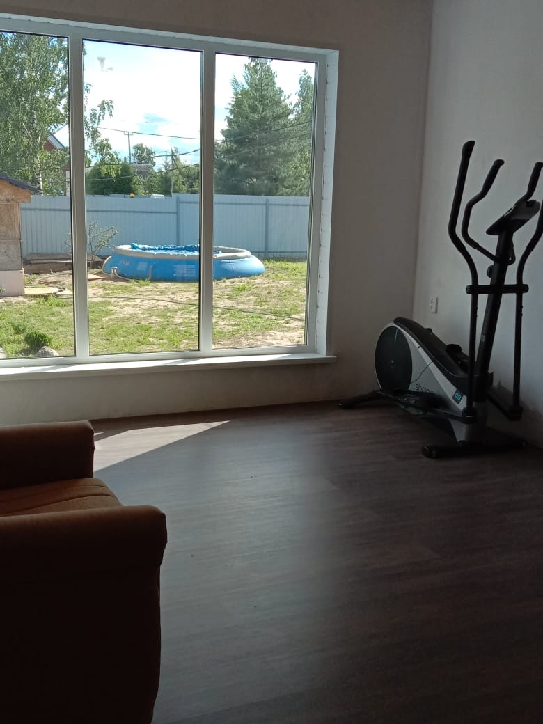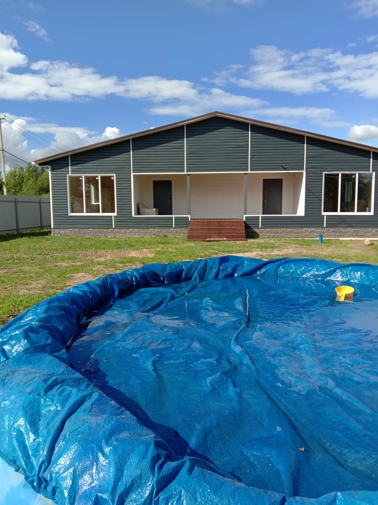 Построен в 2021 г. Дом каркасный, сделан по-финской технологии, строили для себя поэтому все материалы качественные и дорогие. Дом строился на две семьи с двумя отдельными входами, в каждой половине дома 100 кв.м. (спальня 16 кв., спальня 14 кв, кухня-гостинная 32 кв., раздельные с/у, гардеробная, большой хол 18 кв) такая же планировка в другой половине дома. Очень легко объединить две половины, просто поставив дверь через гардероб. И получится один большой дом из 6 комнат. Крытая большая терраса. В доме сделана чистовая отделка, в трех комнатах ремонт. В кухнях-гостинных установлены панорамные окна в пол. Своя скважина с водой, вода проведена в дом, везде есть разводка труб, установлена своя автономная канализация.