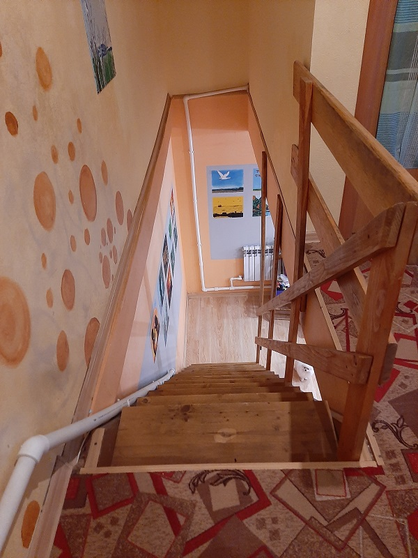 Планировка: котельная, / твердо топливный котел/, прихожая, большая куxня гостиная, гостевая, совмещенный сан узел, лестничный марш на второй этаж / деревянная/  3 спальни. Есть сплит система, интернет, ТВ.