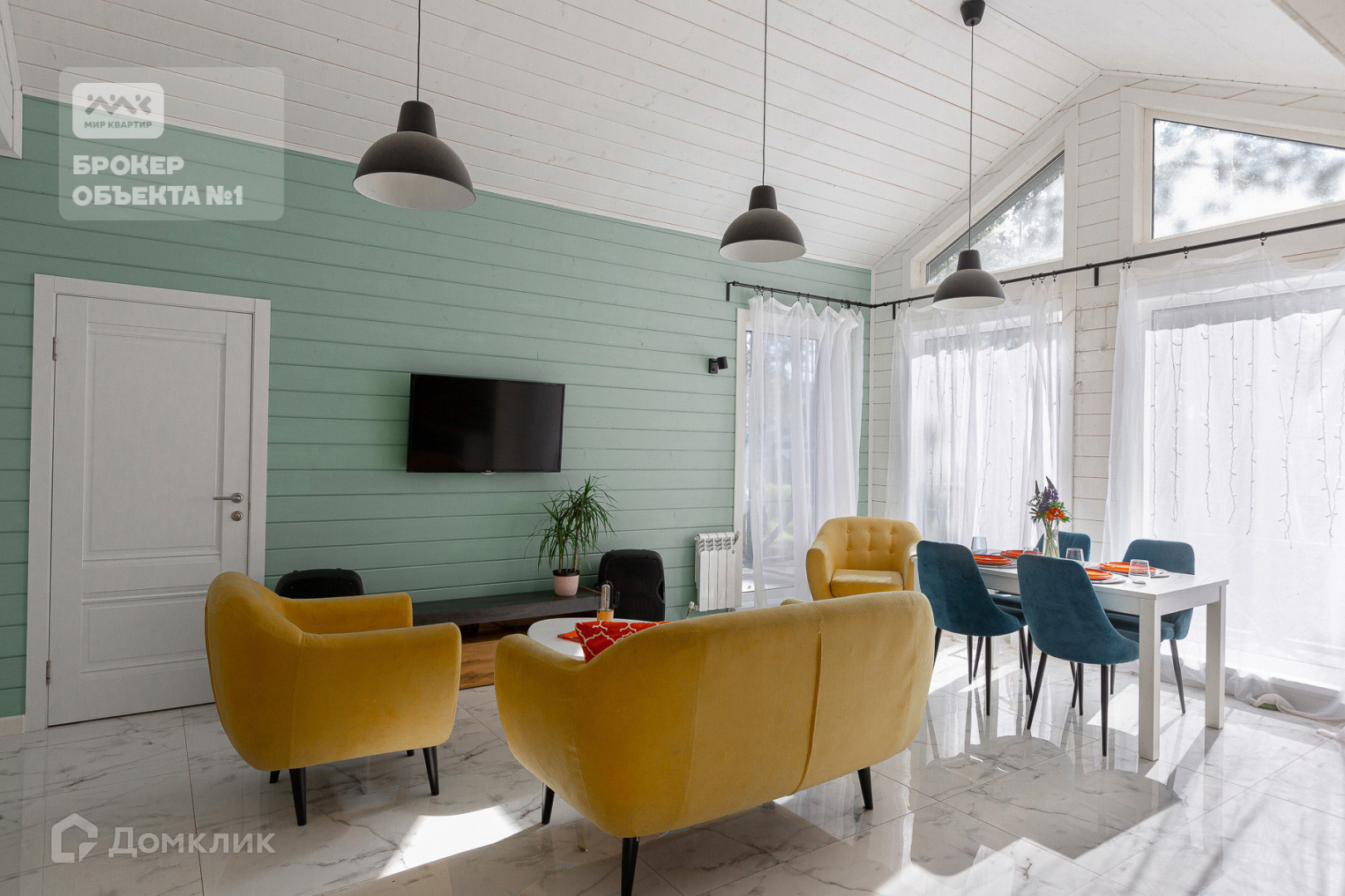 Выполнен качественный дизайнерский ремонт. Благородя второму свету, высоким потолкам и панорамным окнам, создается ощущение света и пространства и открываются чудесные виды на участок, который прекрасен в любое время года.