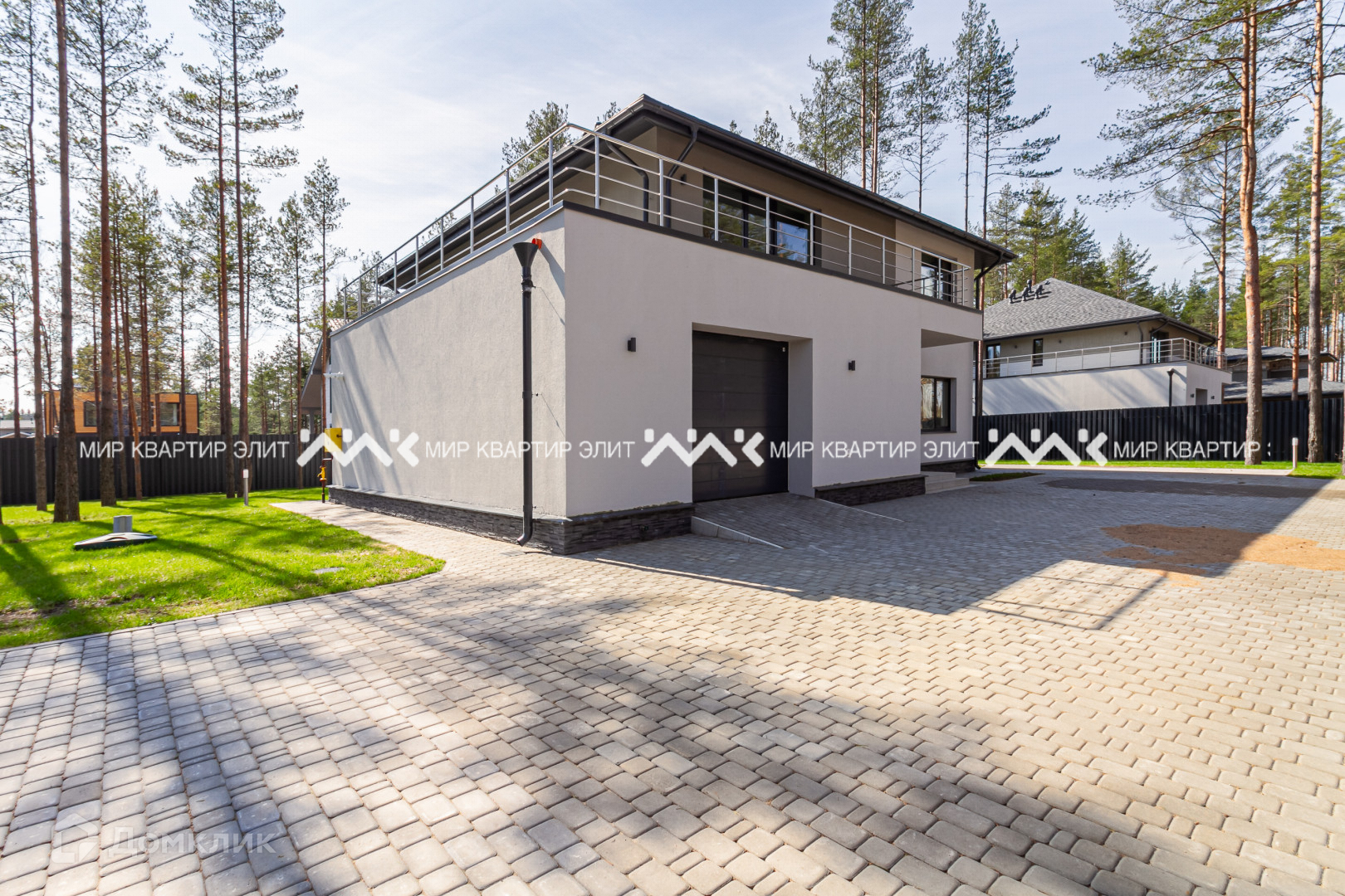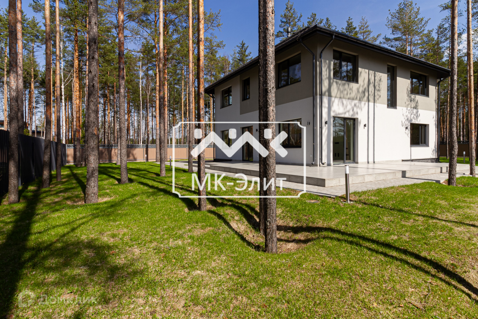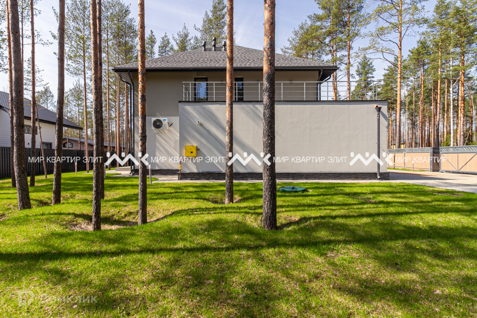 Участок находится в непосредственной близости к лесу и имеет площадь 12 соток. Представляет собой гармоничное сочетание ухоженного газона и величественных елей, создавая атмосферу спокойствия и умиротворения. Перед домом уложена тротуарная плитка, сделан дренаж и ливневая канализация.