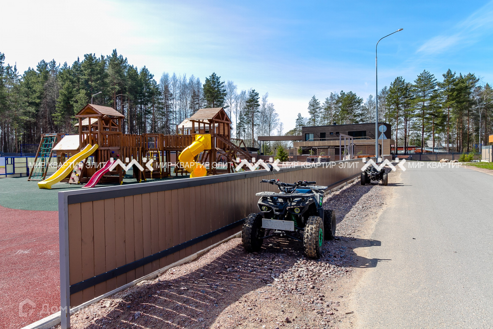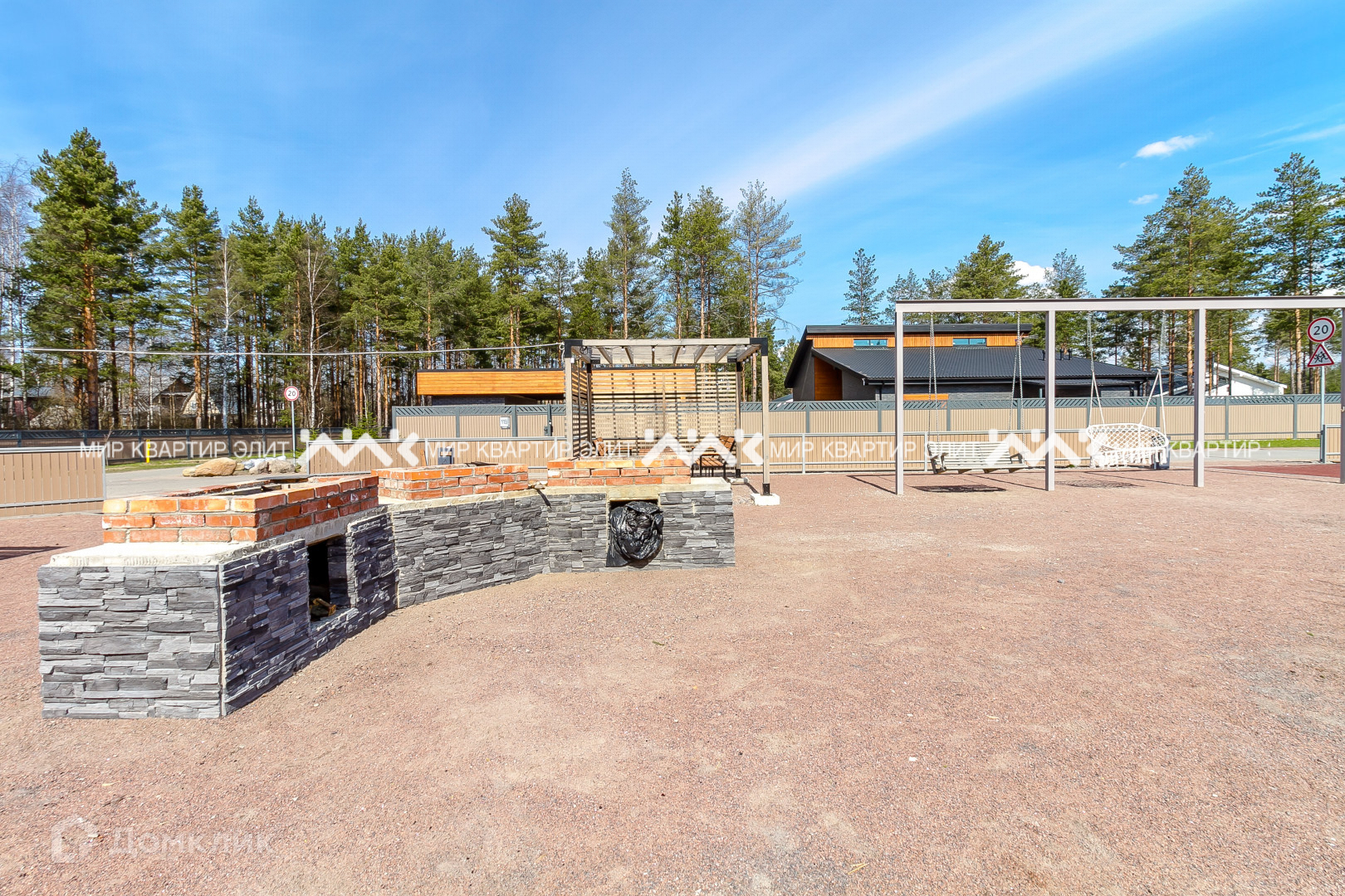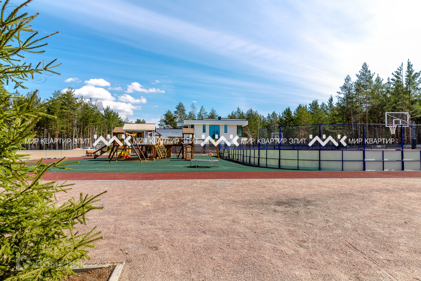 Участок находится в непосредственной близости к лесу и имеет площадь 12 соток. Представляет собой гармоничное сочетание ухоженного газона и величественных елей, создавая атмосферу спокойствия и умиротворения. Перед домом уложена тротуарная плитка, сделан дренаж и ливневая канализация.