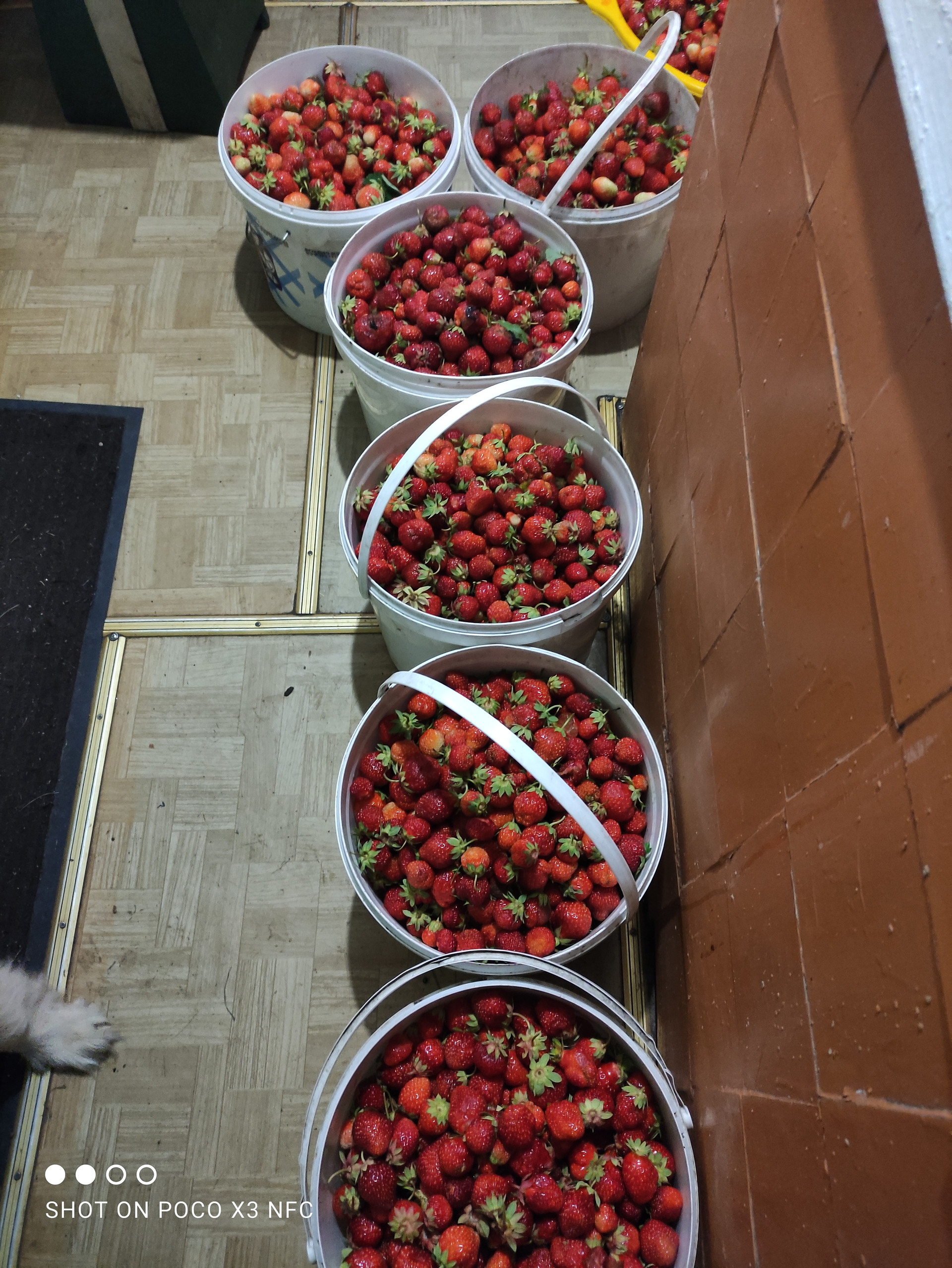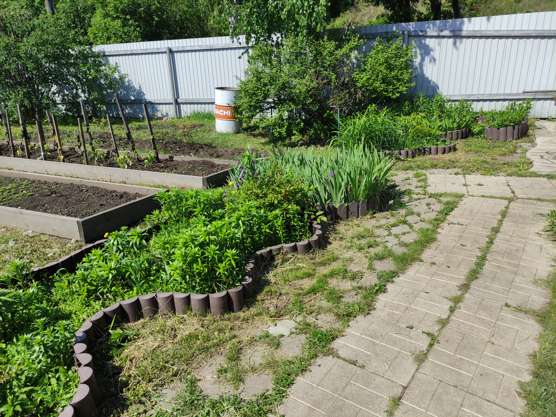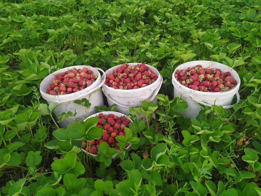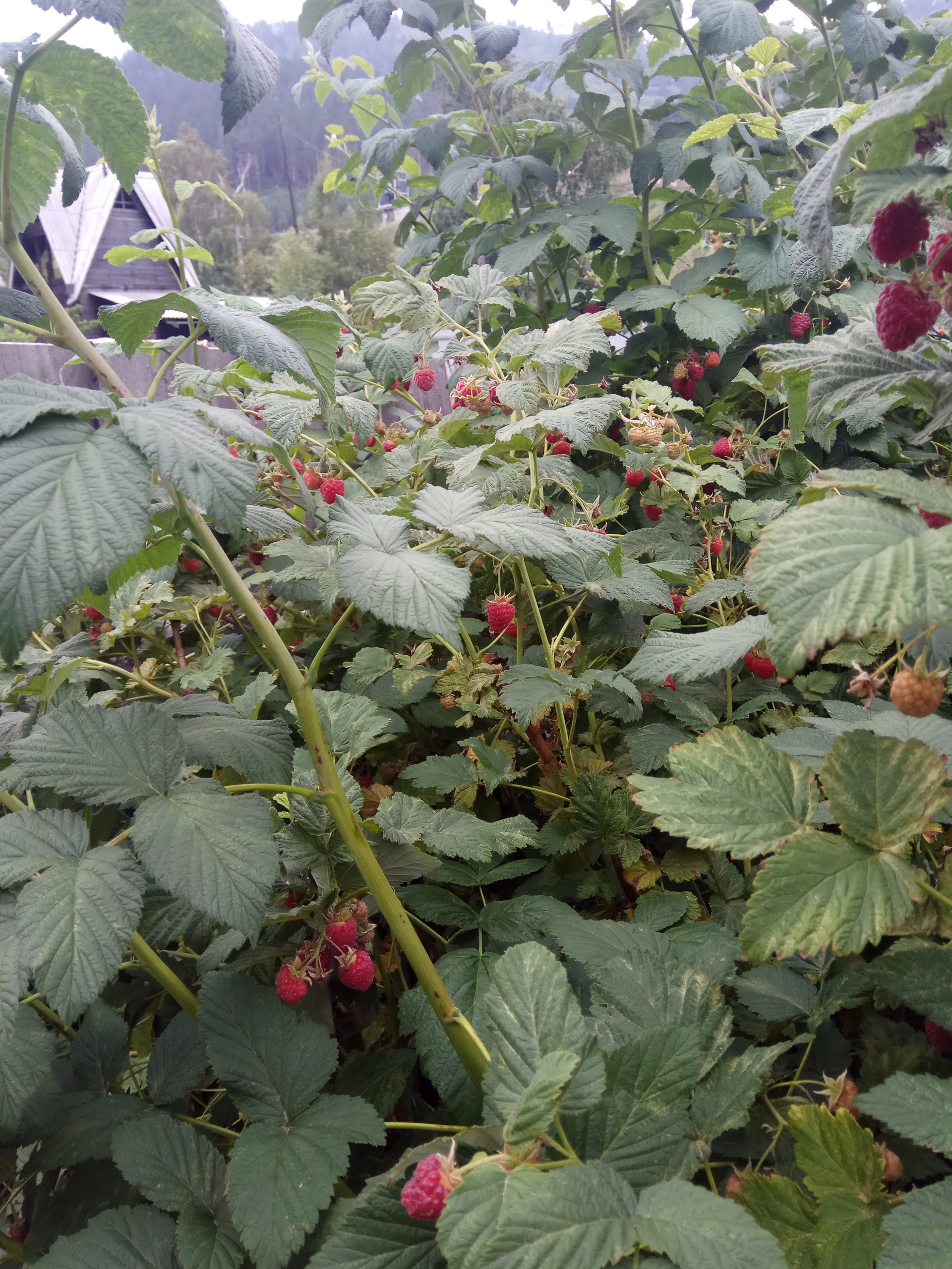 Насаждения: яблоня, груша, слива (желтая, синяя), абрикос, жимолость, ирга, смородина (черная (собираем по 5-7 ведер), красная, белая), вишня, крыжовник красный неколючий, облепиха неколючая, малина (собираем 150-200 литров за сезон), клубника (урожай до 150 литров).