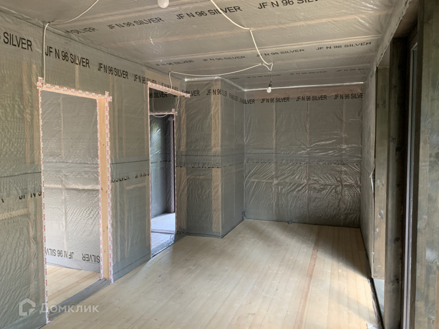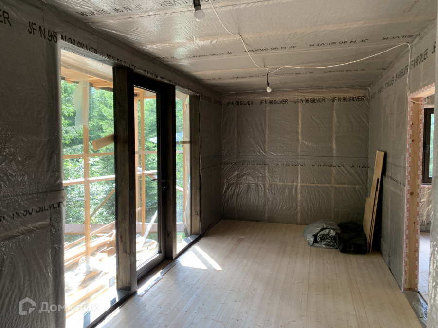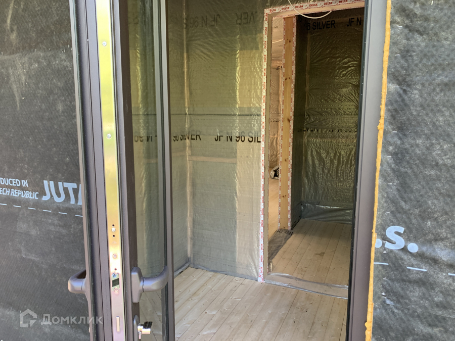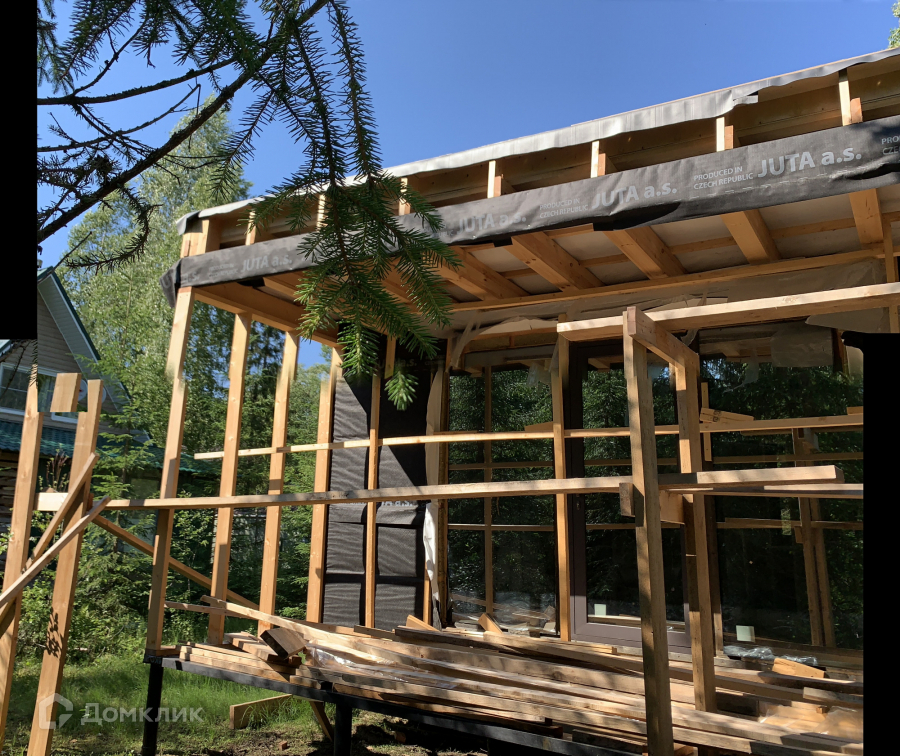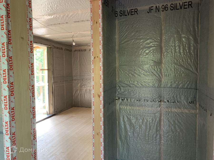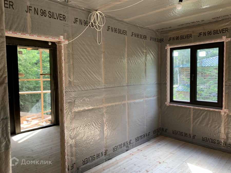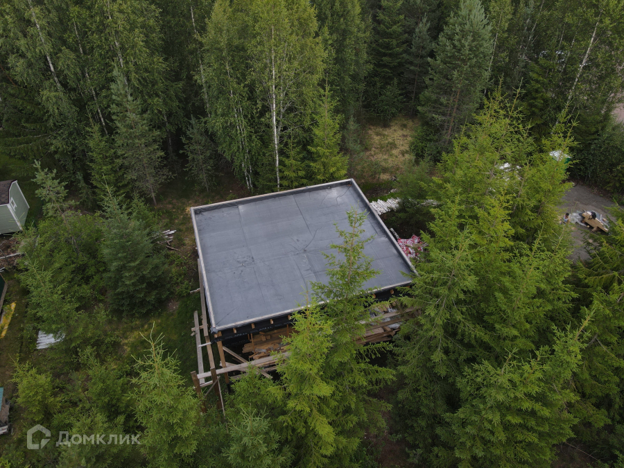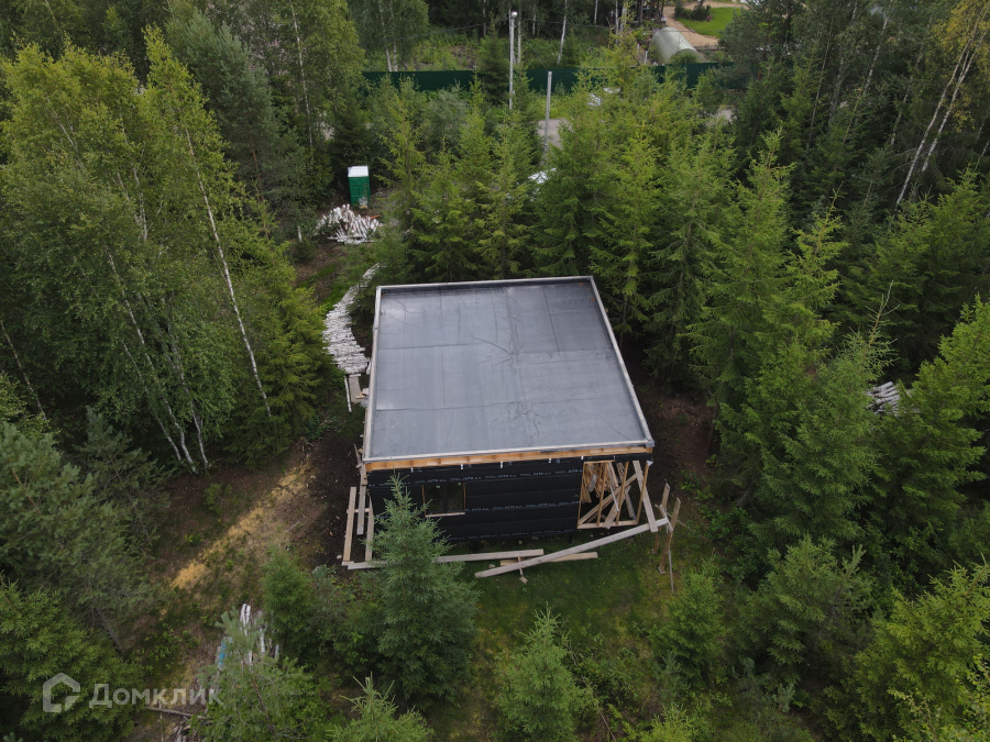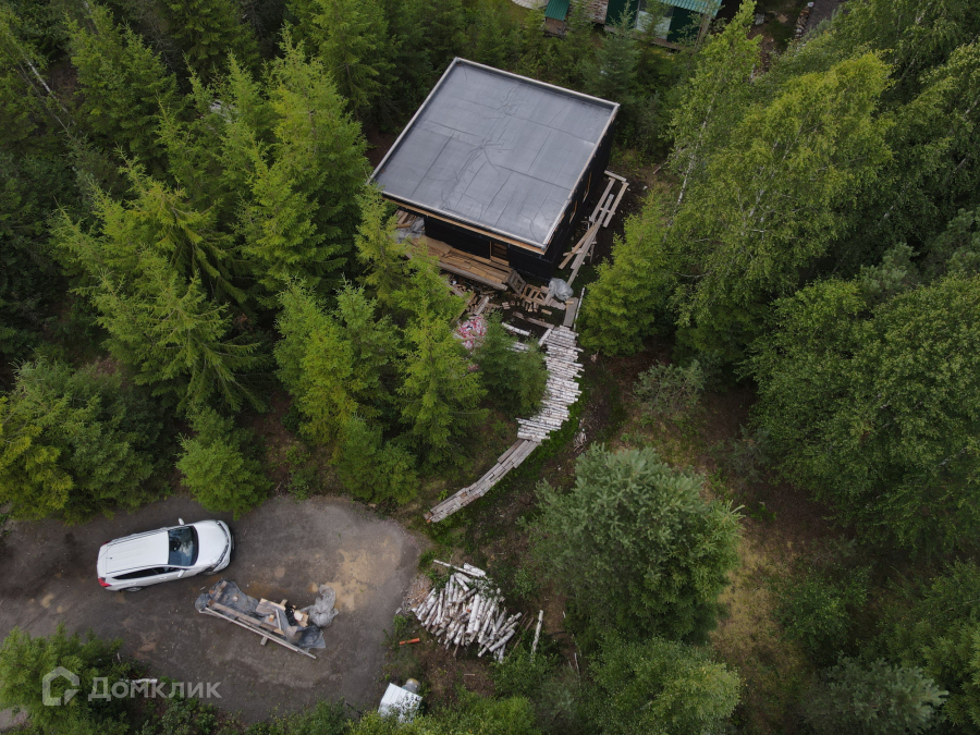 Дом одноэтажный стоит на свайно-винтовом фундаменте. Крыша плоская, покрыта EPDM-мембраной. Стены из бруса, утеплены качественными и теплым утеплителем ISOROC. Пленки гидро-, ветро-, пароизоляции чешского производства. Окна энергосберегаемые в алюминиевом профиле. Делали под заказ в рамках проекта дома. Планировка включает в себя: тамбур, холл, совмещенный с/у, спальня, кухня-гостиная, из которой идет выход на большую террасу с видом на лес. На участке при въезде сделана парковка на 3 машины, также установлен био-туалет.