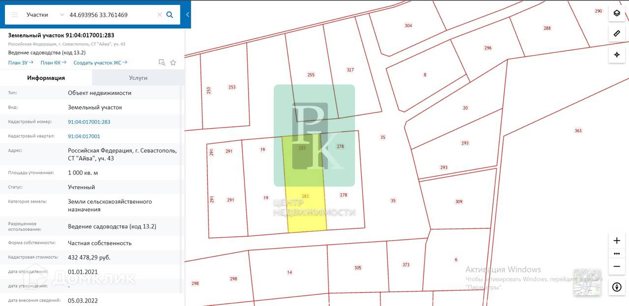 Видовой участок 10 соток (СТ) расположен в г. Севастополь, СТ “Айва”. Участок правильной формы, с соотношением сторон 50м*20м, с уклоном. Подъезд грунтовка.