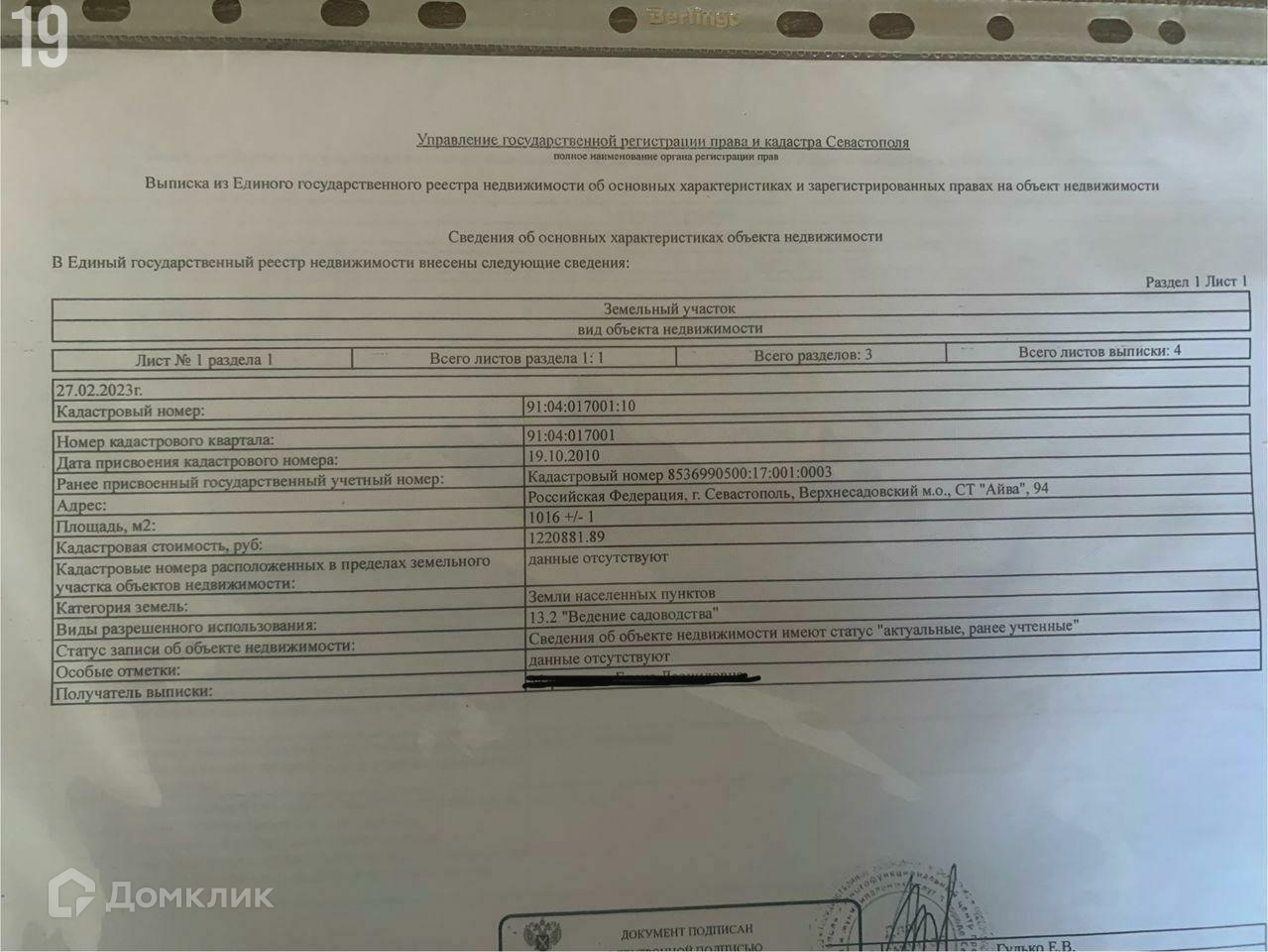 Продается видовой участок 10 соток в нахимовском районе г. Севастополь в СТ «Айва».Рядом расположены с. Пироговка, Верхнесадовое, Фронтовое, Железнодорожное. До центра города Севастополя 30 км, до пляжа «Любимовка» 15 км, до г. Бахчисарай 12 км.Кадастровый номер: 91:04:017001:10, участок 94.Категория земель: земли населенных пунктов.Вид разрешенного использования: 13.2 «Ведение садоводства», что позволяет вам построить жилой дом, и даже два жилых дома.Участок прямоугольной формы 20*50, идеально делится на два участка, прекрасное расположение на возвышенности. С участка прекрасный вид на долину, рядом расположен лес.К участку грунтовый подъезд, съезд с главной трассы.Кооператив развивается, планируется подача заявлений в Севэнерго.Документы РФ, один собственник.Предложение без дополнительных комиссий для покупателей.