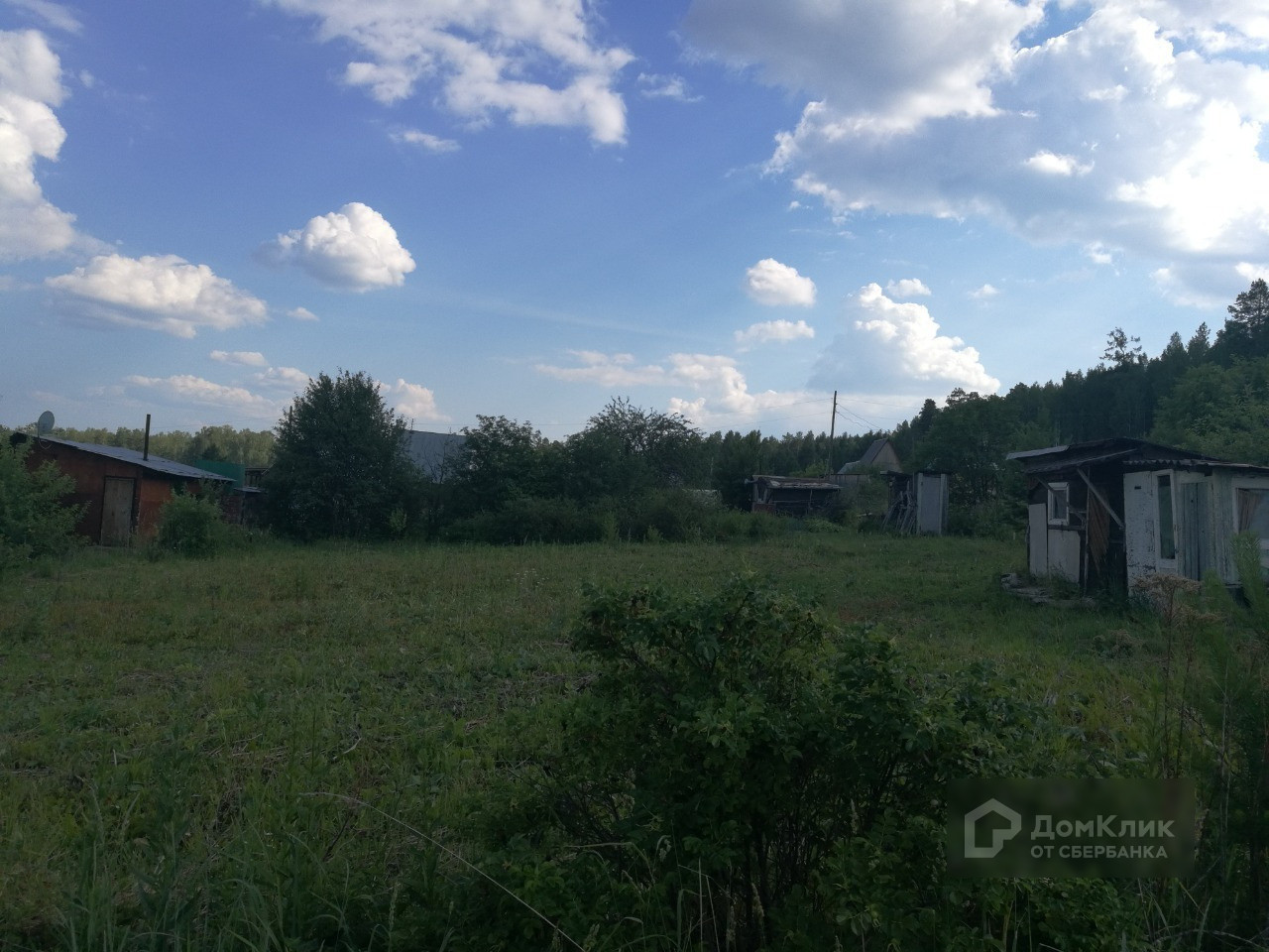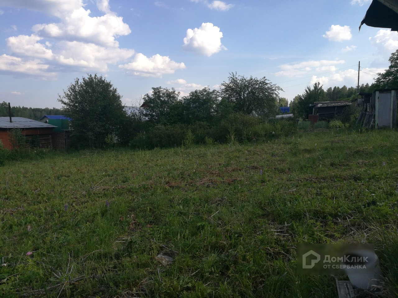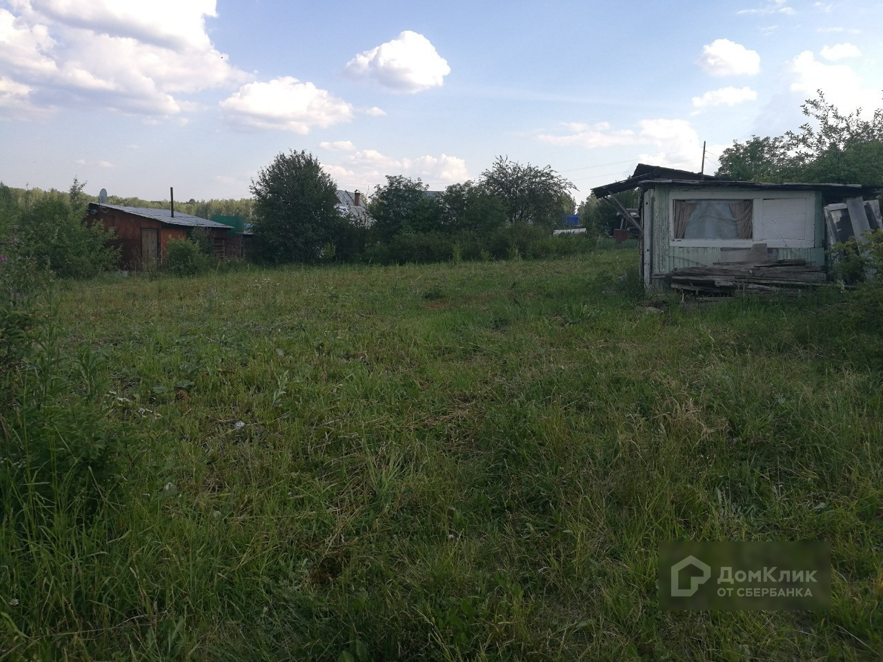 На участке имеется щитовой домик с летней кухней, туалет, плодово-ягодные насаждения: вишня, малина, красная и чёрная смородина, черёмуха, ирга, также растут берёза и сосна. Земля не разработана, трава скошена.