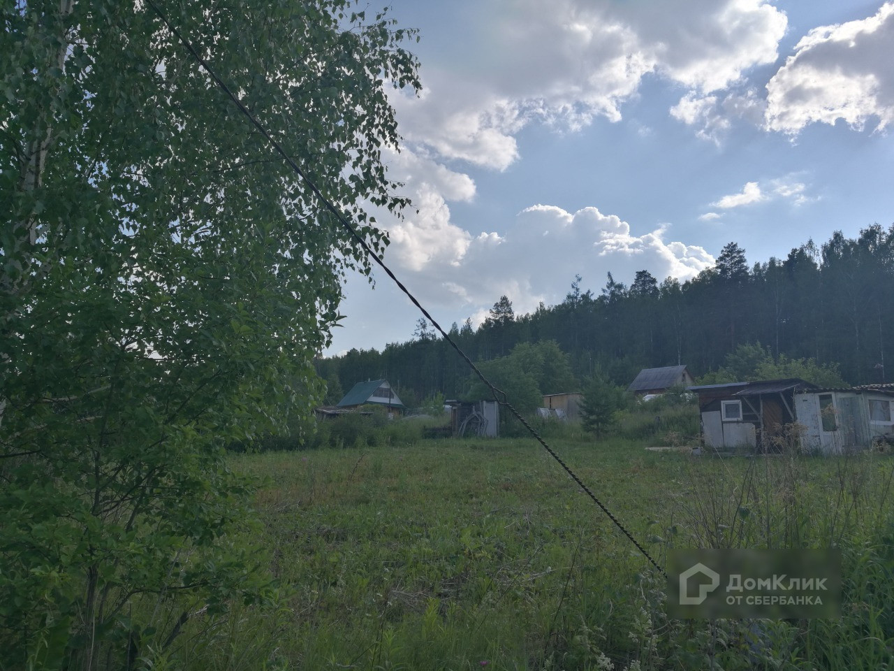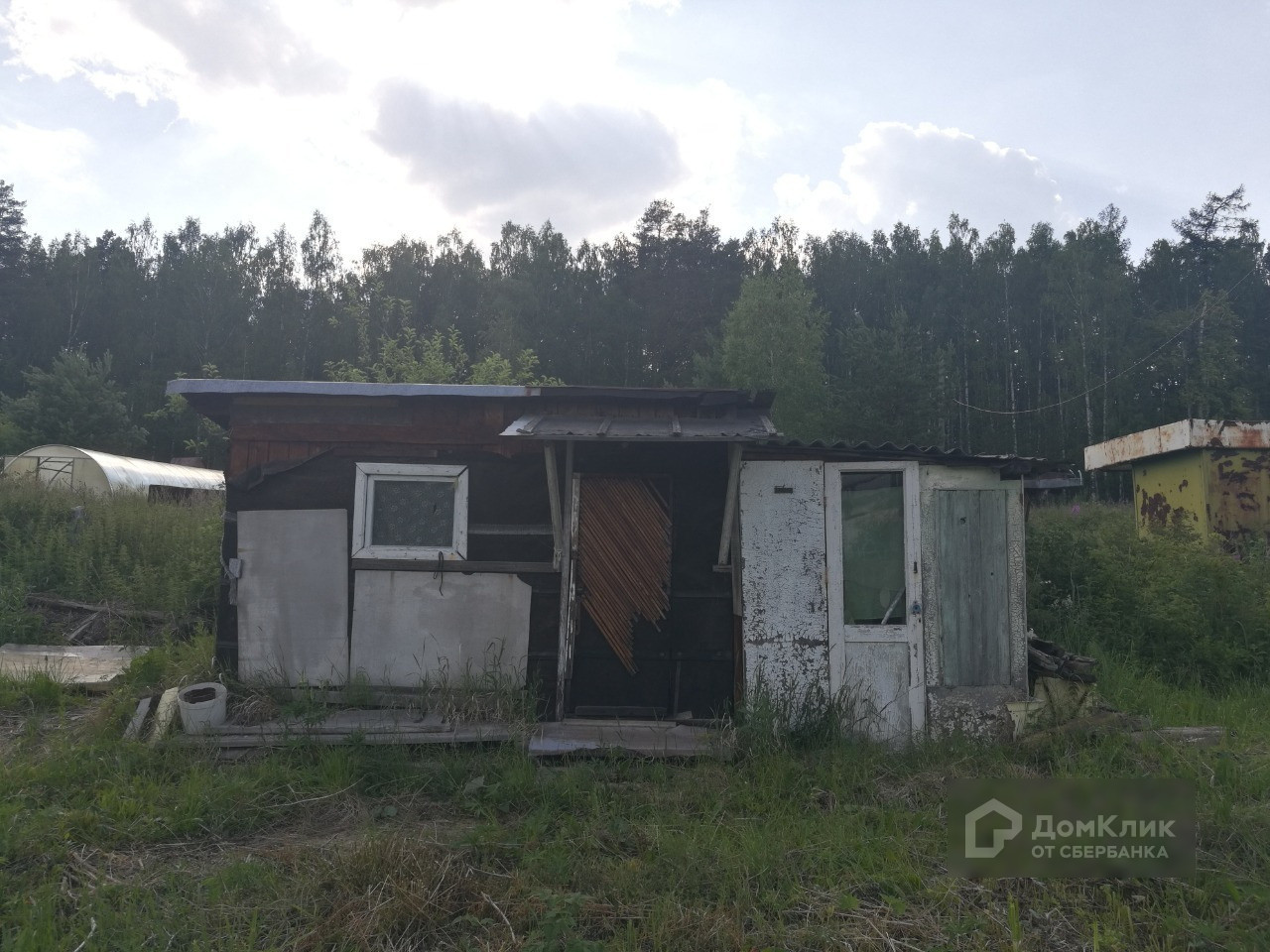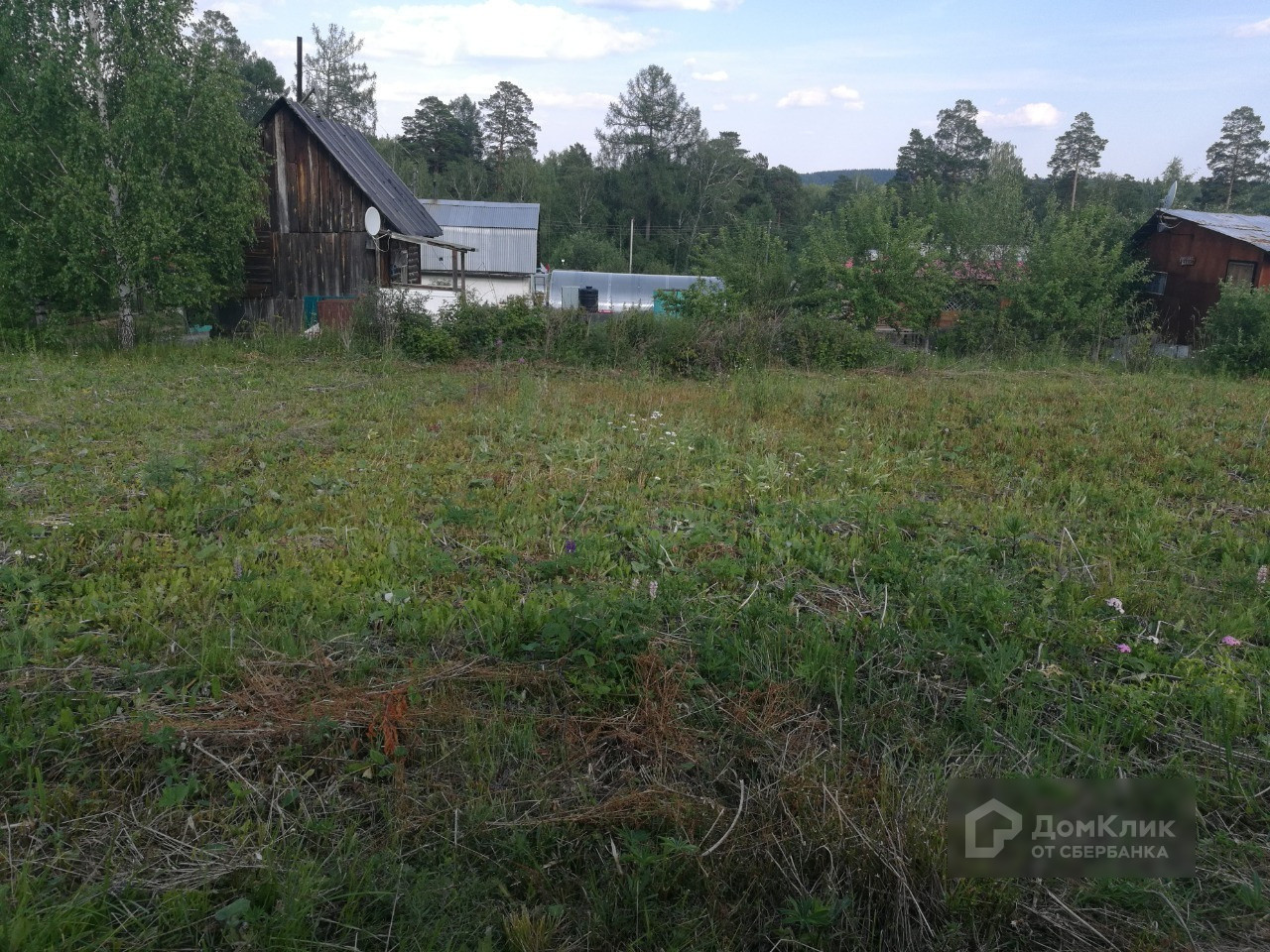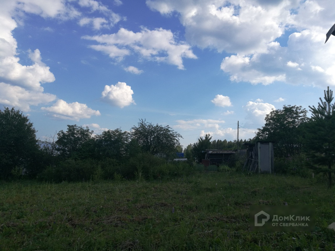 На участке имеется щитовой домик с летней кухней, туалет, плодово-ягодные насаждения: вишня, малина, красная и чёрная смородина, черёмуха, ирга, также растут берёза и сосна. Земля не разработана, трава скошена.