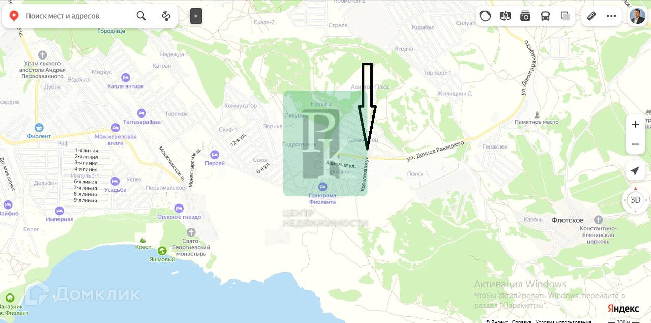 Расположение участка очень хорошее. Открывается панорамный вид на море. В 200-х метрах расположен продуктовый магазин.