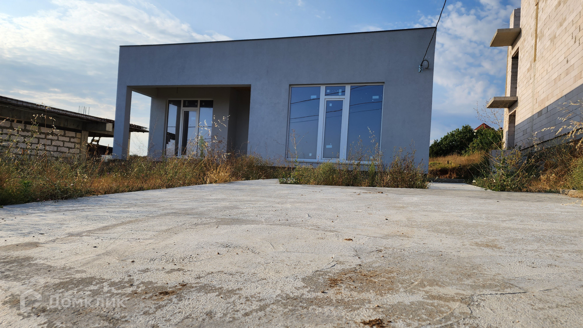 Построен из ракушечника на ровном участке 4 сотки.