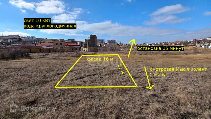 Близость к самой излюбленной жителями и гостями города смотровой площадке делает этот участок еще более привлекательным. Вы будете наслаждаться семейными прогулками вдоль берега и встречать живописные закаты Фиолента. Если у вас есть собака, то это идеальное место - большая территория, чтобы ваш питомец вдоволь набегался.