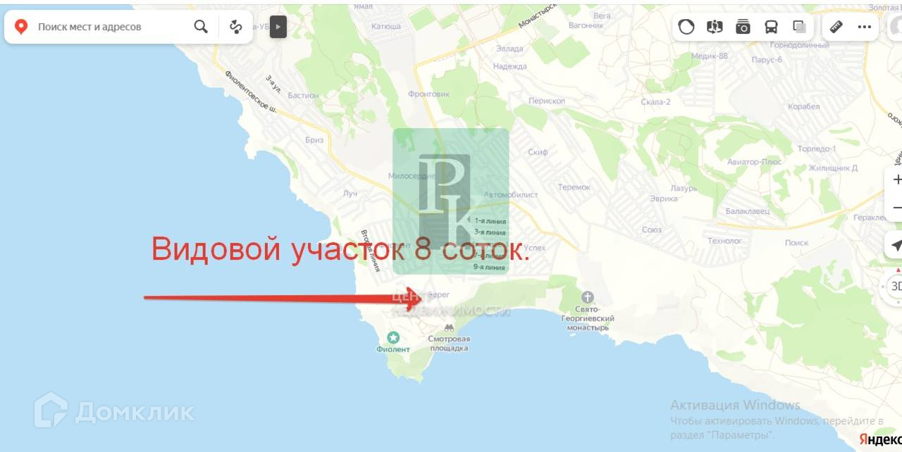 Расположен на Фиоленте рядом со смотровой площадкой “Фиолент”. Участок видовой.
