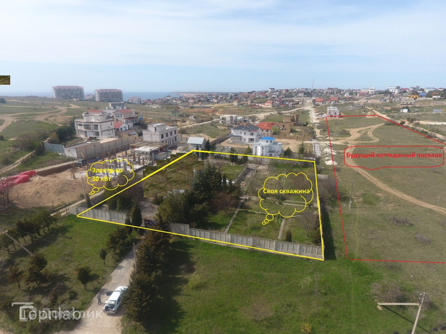 С участка открывается вид на мыс Айя, Георгиевский монастырь и панорамный вид на Черное море.