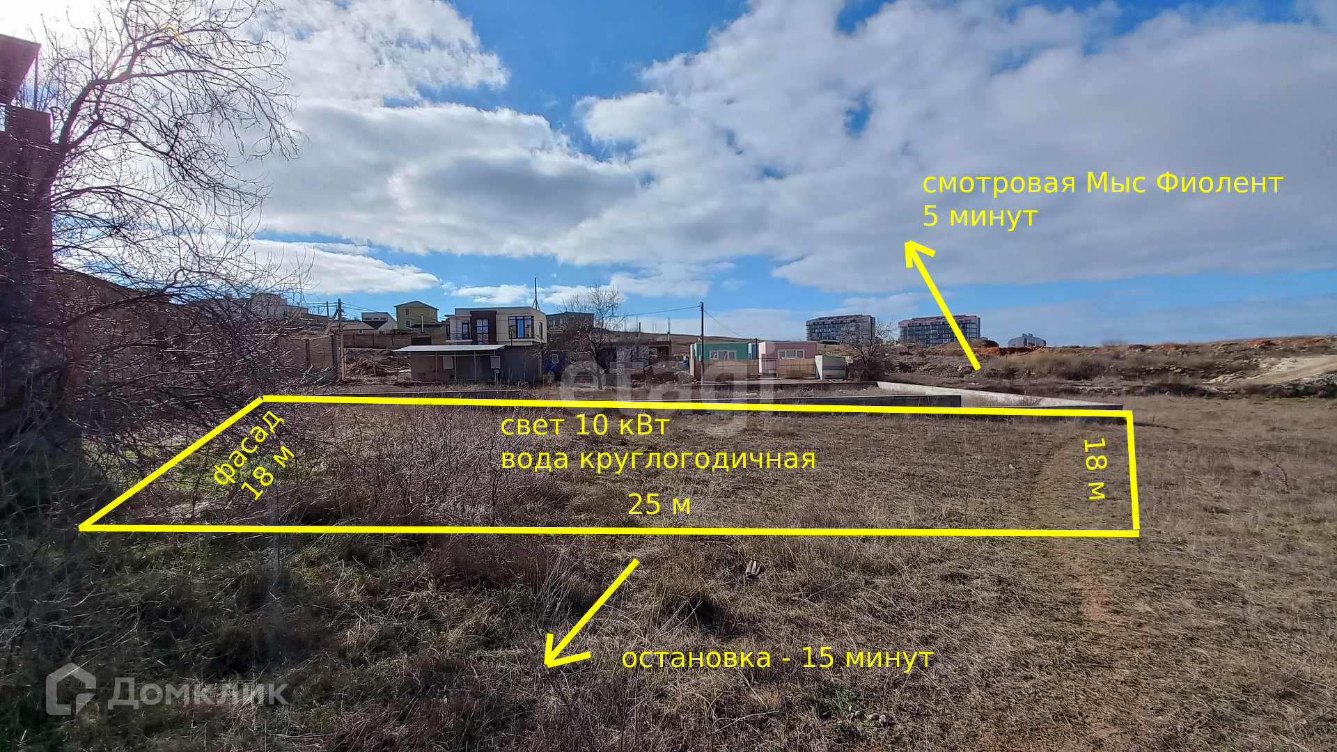 Близость к самой излюбленной жителями и гостями города смотровой площадке делает этот участок еще более привлекательным. Вы будете наслаждаться семейными прогулками вдоль берега и встречать живописные закаты Фиолента. Если у вас есть собака, то это идеальное место - большая территория, чтобы ваш питомец вдоволь набегался.