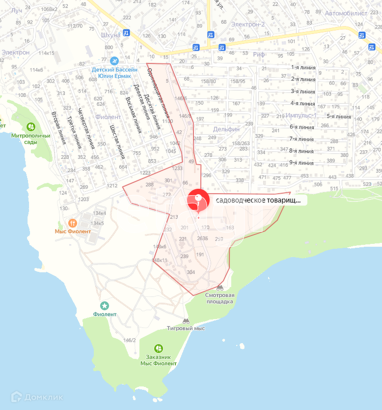 Продается участок 4,5 сотки в одном из самых облагороженных товариществ на Фиоленте в СТ Берег и в самом живописном месте!