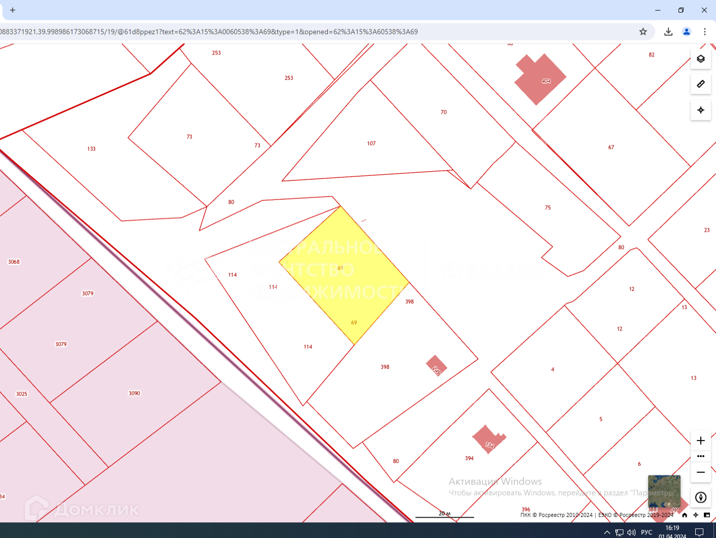 Кадастровый номер 62:15:0060538:69. Общая площадь 10,5 соток.