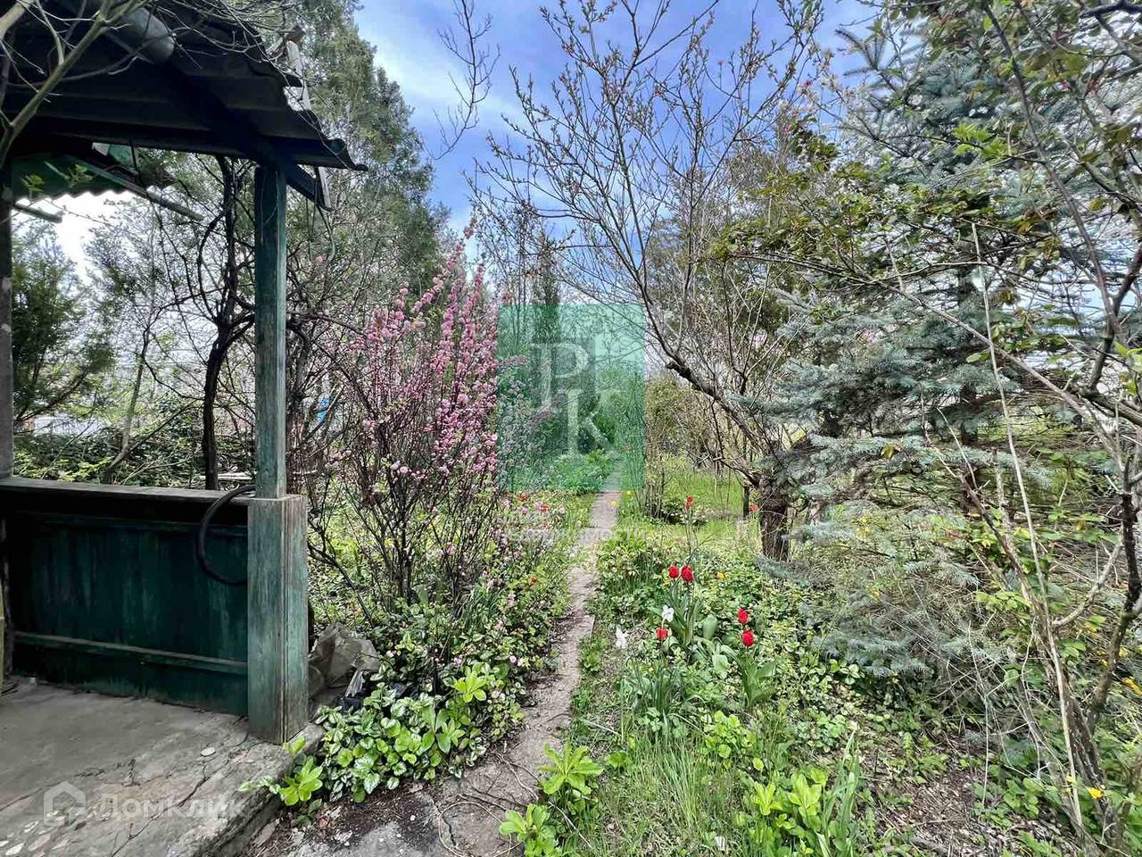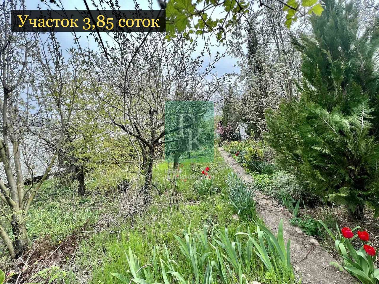 Участок ухоженный, растут плодовые деревья, а также много декоративных растений.