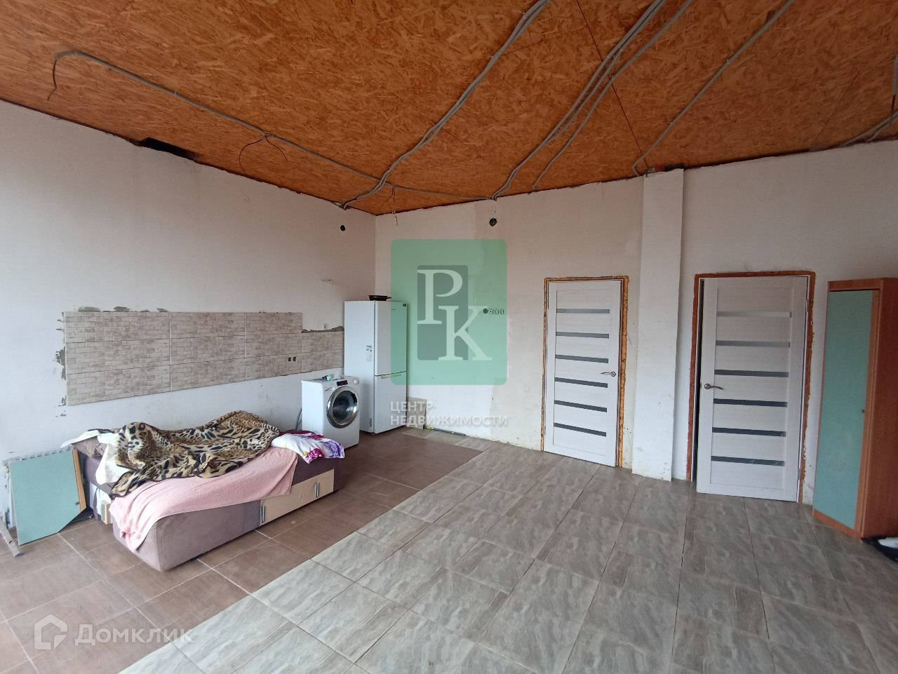 Дом построен из природного, крымского камня ракушка, толщиной в 40 см и дополнительно утеплён снаружи. Для комфортного проживания осталось сделать потолок, поставить котёл и поклеить обои.