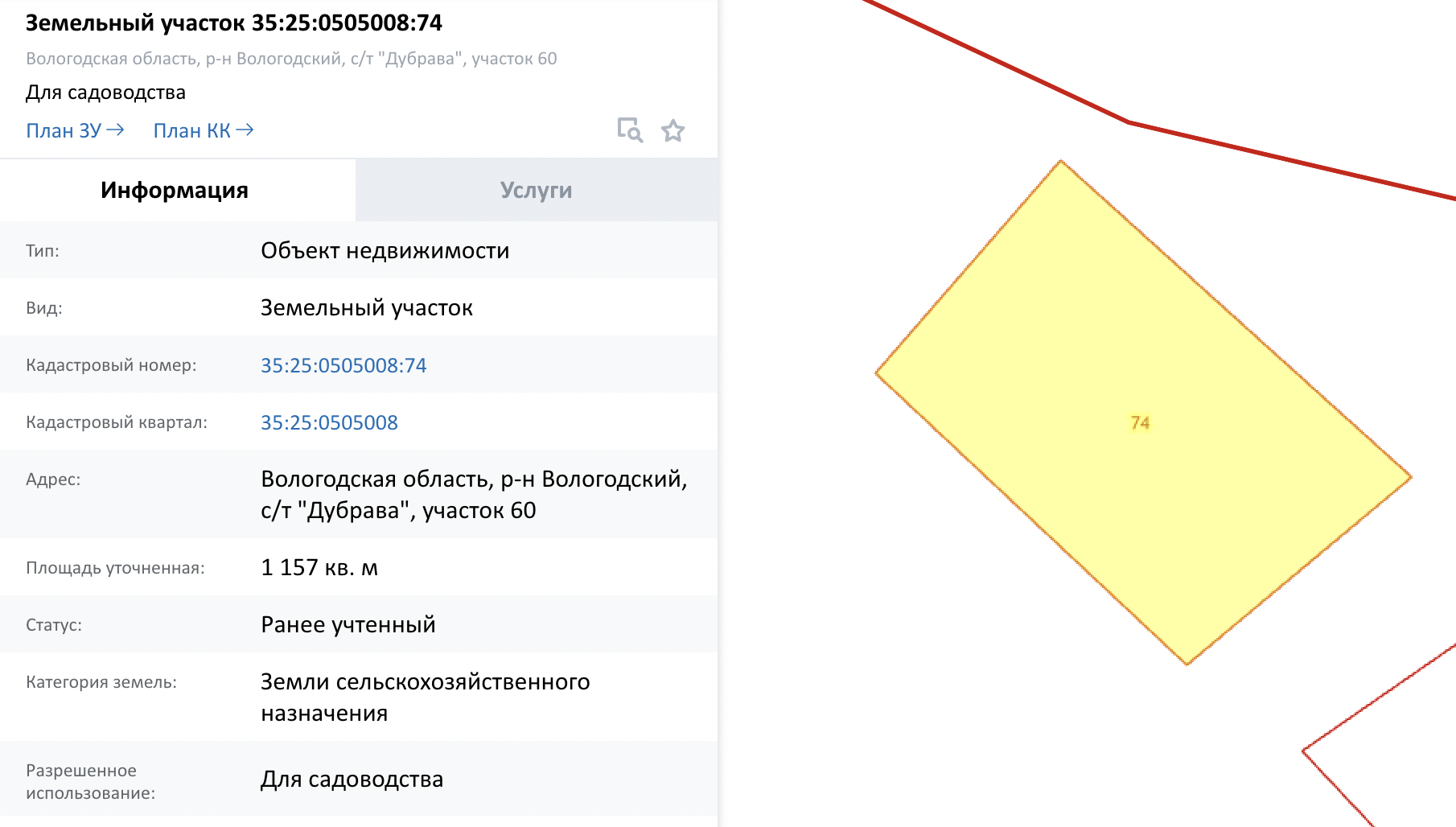 Кадастровый номер - 35:25:0505008:74