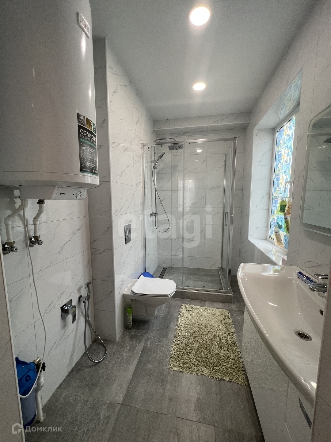 На первом этаже расположена кухня гостиная с выходом на террасу , совмещенный санузел , три спальни одна из них с собственным санузлом. На первом этаже теплый пол. На втором этаже санузел , гардеробная и две спальни. На втором этаже радиаторы.