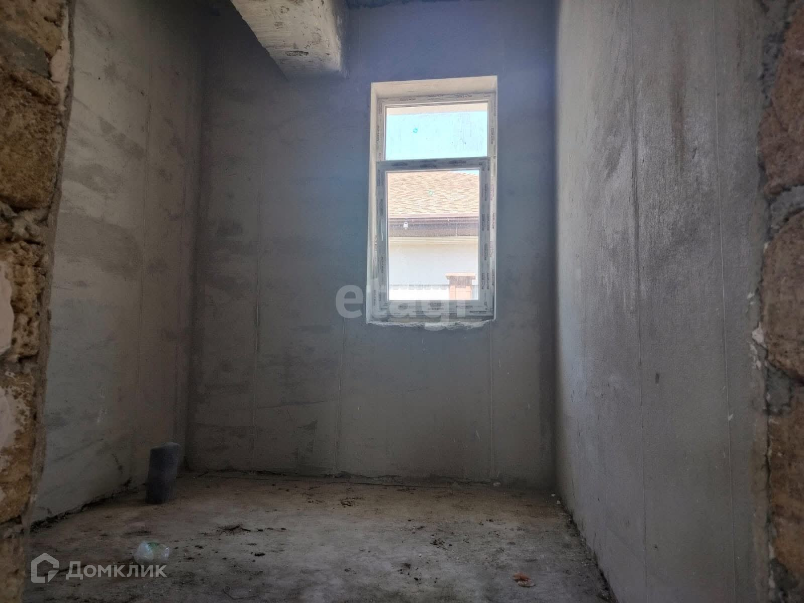 В доме выполнена штукатурка, а газовый стояк уже подведен к участку. Кроме того, на участке уже завезен грунт, а парковочное место высыпано щебнем.