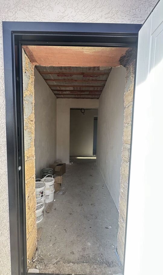 Дом утеплен, нанесена фактурная штукатурка короед, окрашен. Снутри , дом сдается в предчистовой отделке. Смонтирована водосточная система. По периметру дома широкие отмостки. Во дворе залита стяжка в районе отмостков.