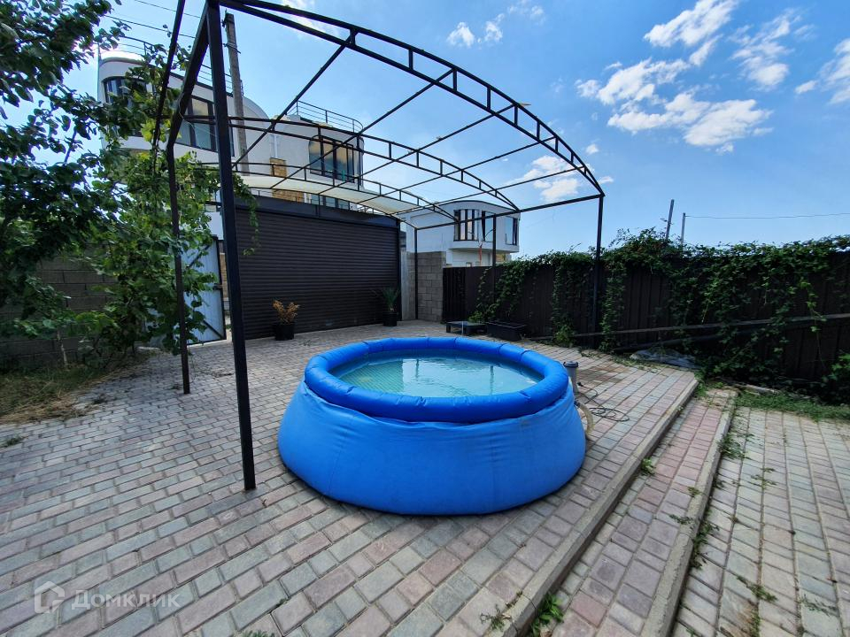 Придомовая территория выложена тротуарной плиткой, есть возможность поставить автомобиль, на летнее время года стоит бассейн, есть мангал, зона барбекю.