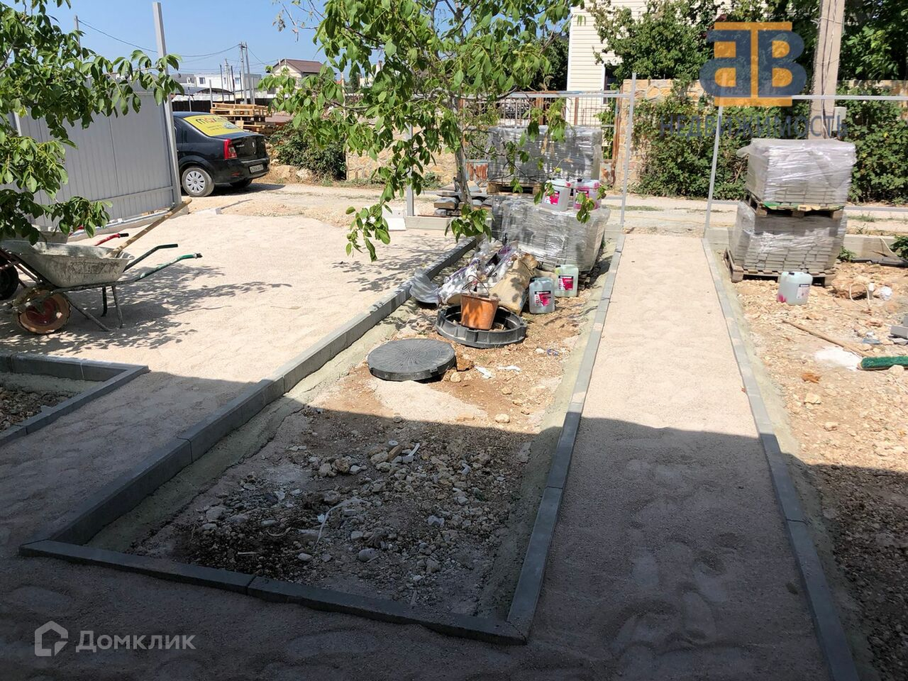 Установлены автоматические роллетные ворота. Территория участка будет облагорожена, площадка для автомобиля и дорожка к дому выполнены тротуарной плиткой.