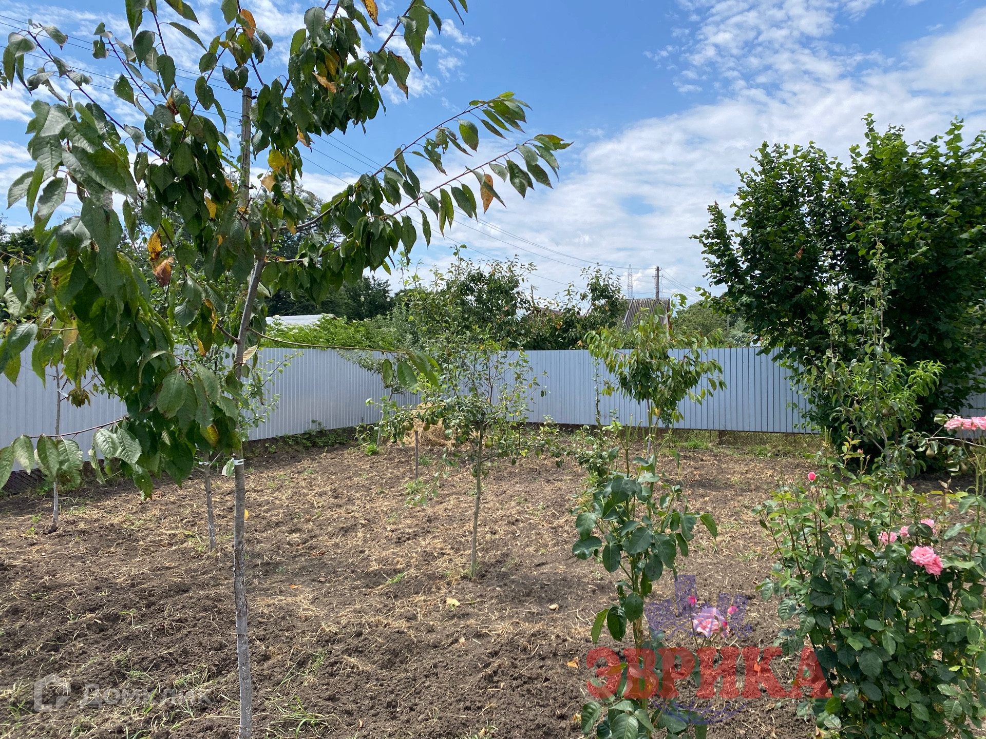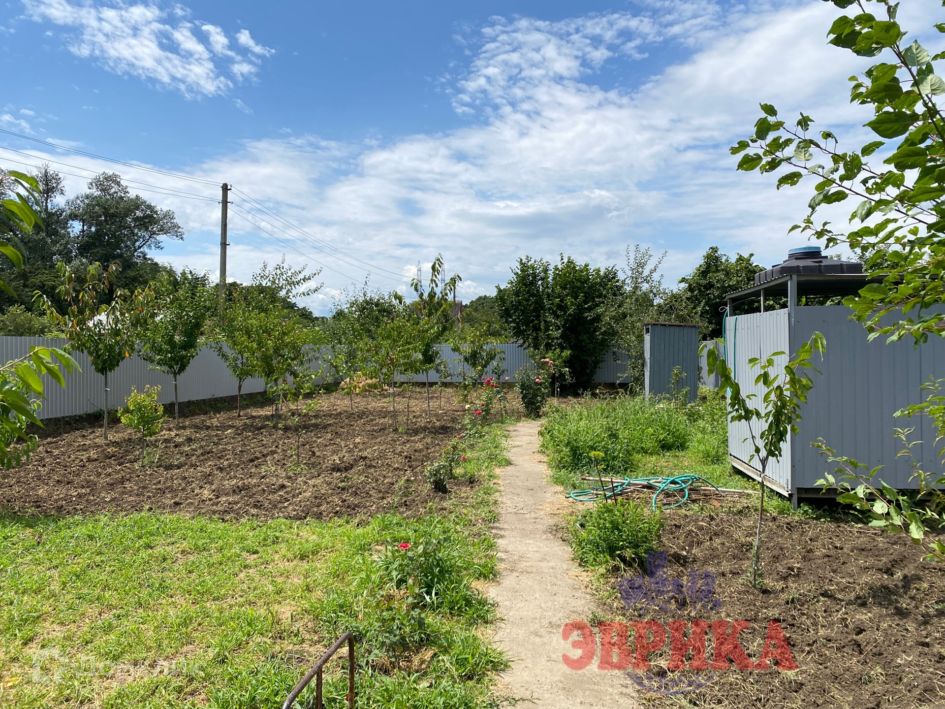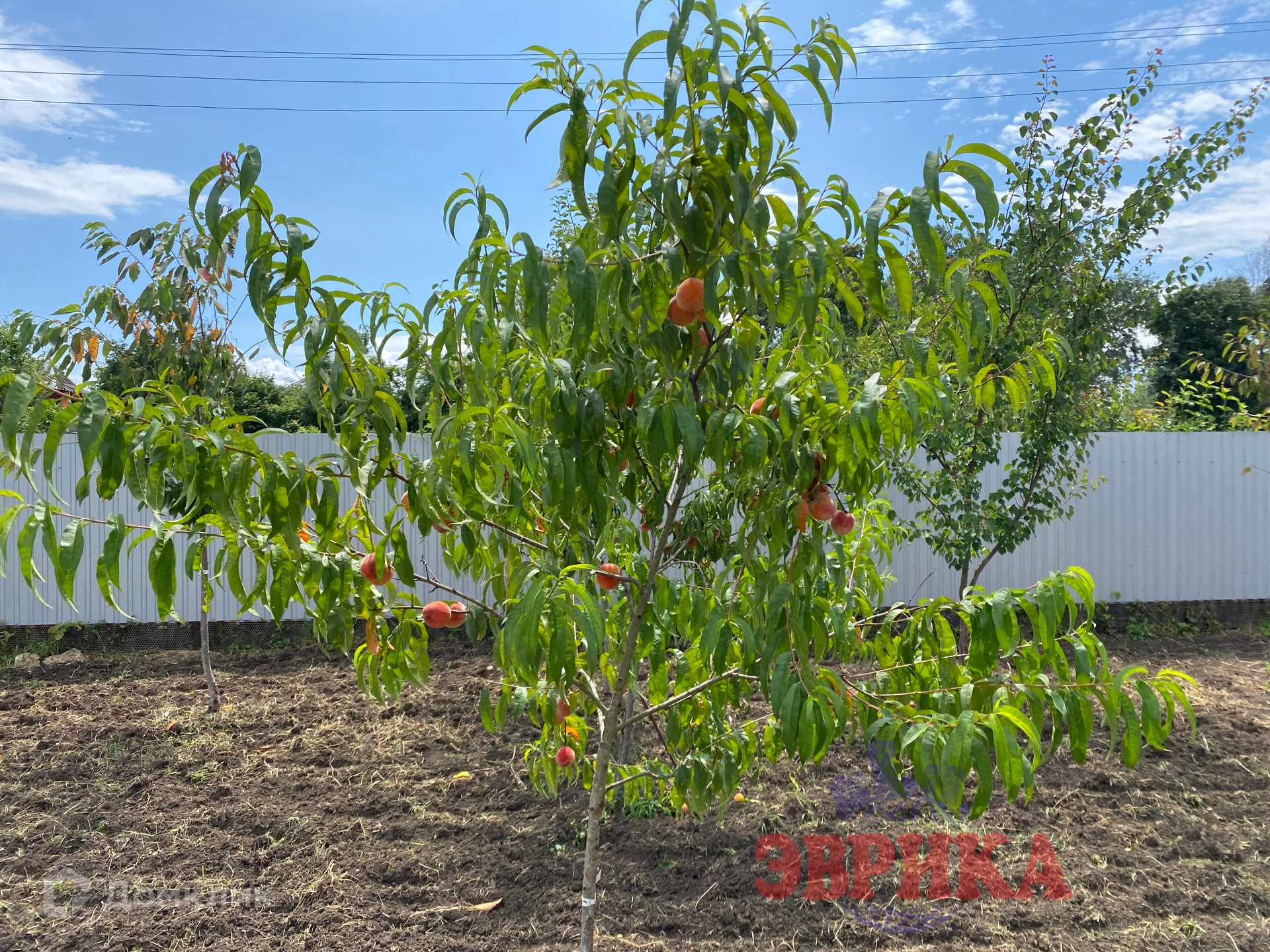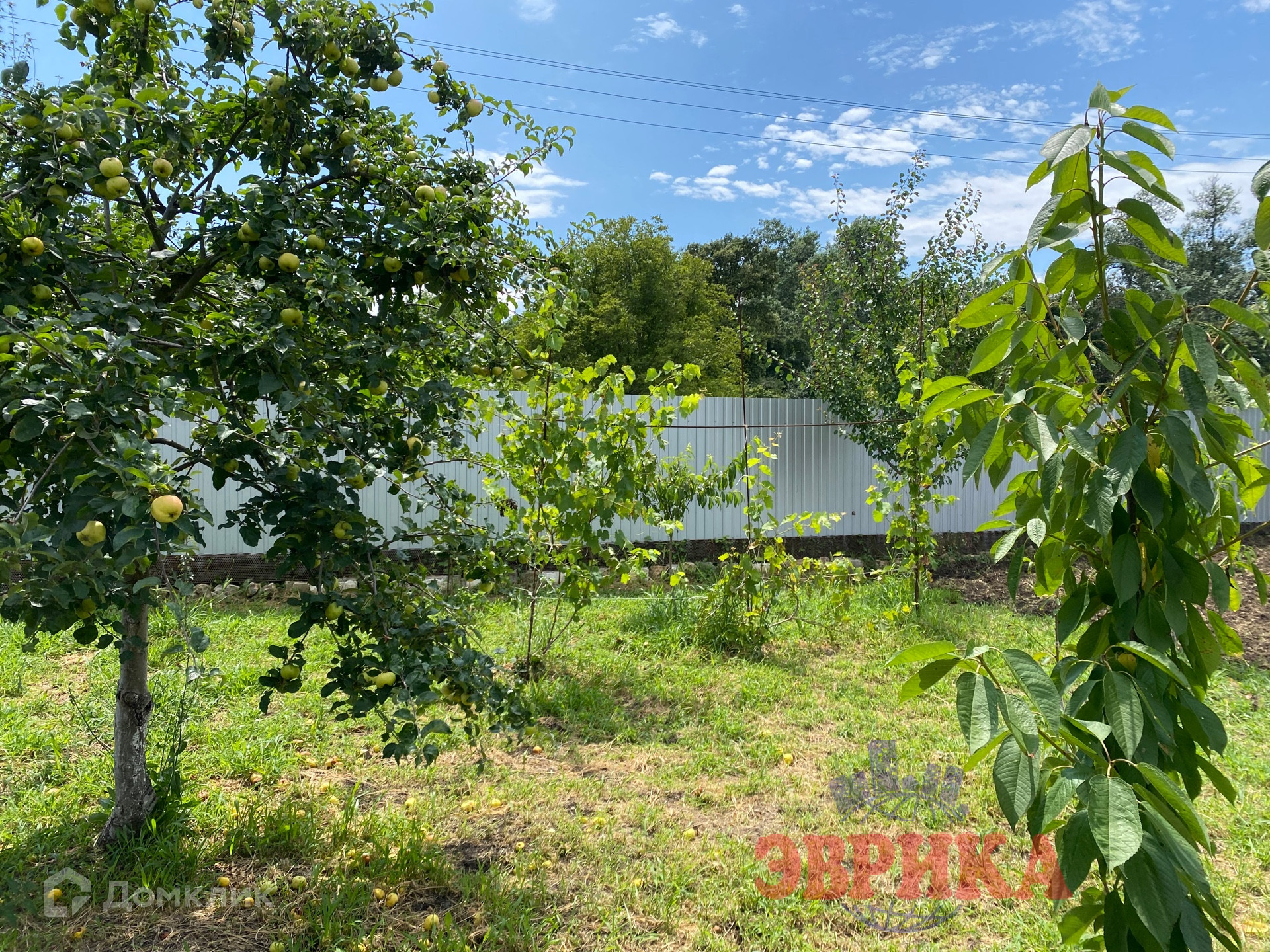На участке много плодовых деревьев.