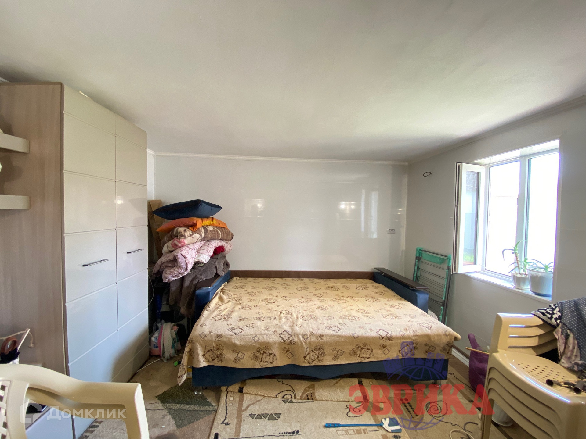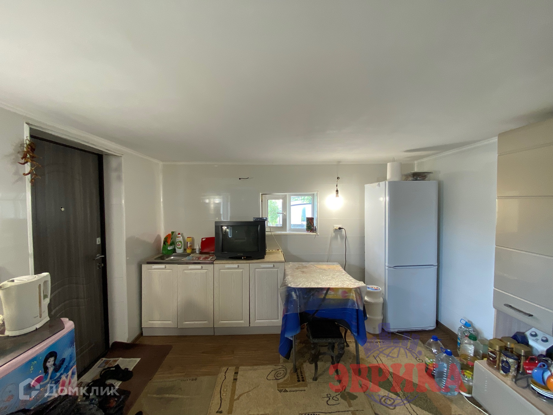 В доме жилая комната и кухня - гостиная.