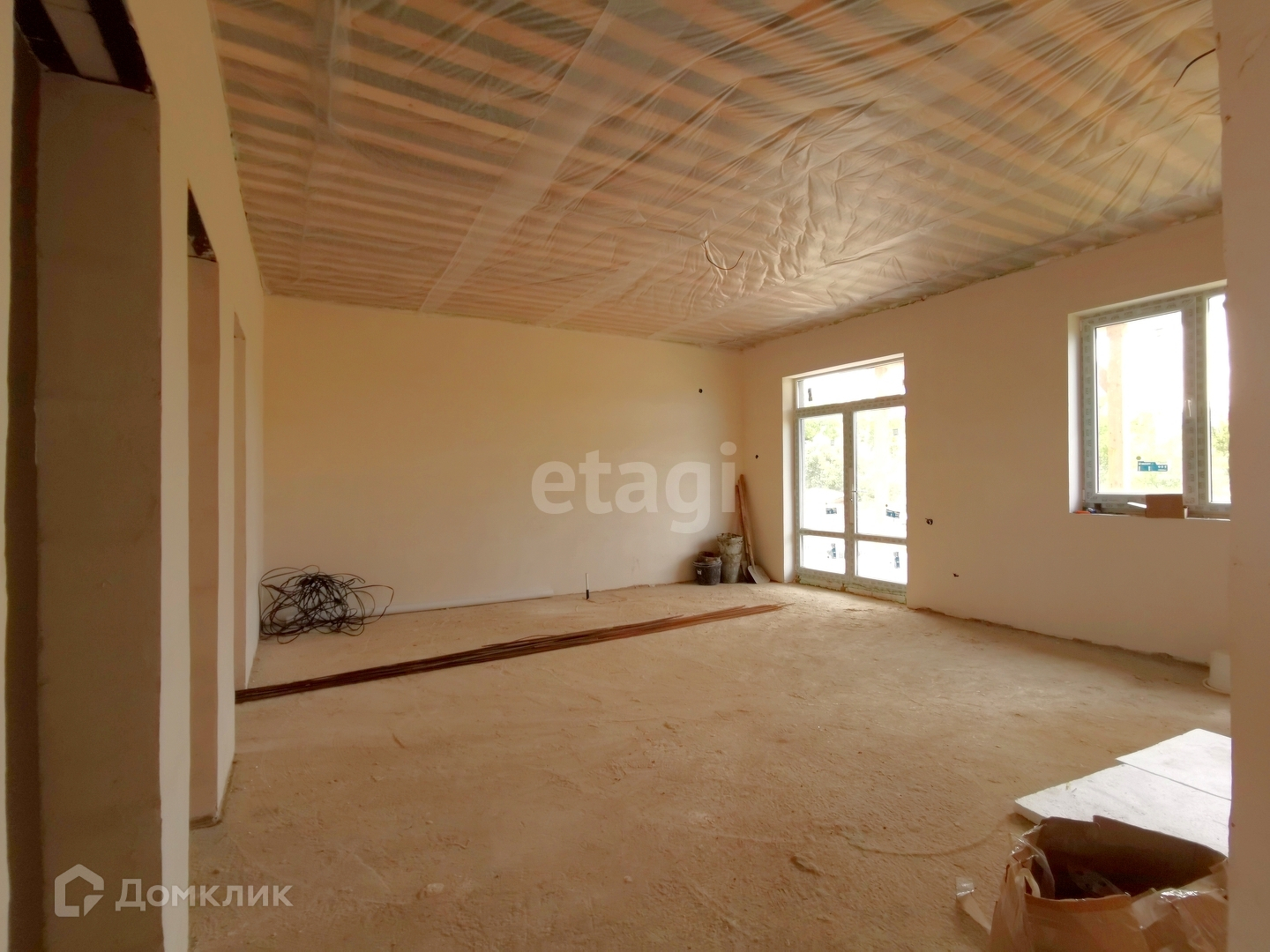 Стены оштукатурены, зашпатлеваны, подготовлены под покраску/обои; в санузле стены не протянуты (под плитку). Пол - черновая стяжка. Электрика разведена по дому, выделенная мощность 5 кВт (в настоящий момент в СТ идет подключение к городским сетям). Вода постоянная ГОРОДСКАЯ, заведена в дом. Септик - кольца жб.